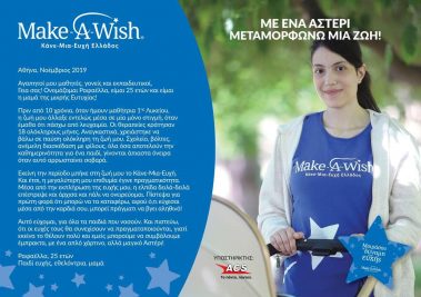 Ένα χάρτινο αστέρι εδώ και 21 χρόνια «ταξιδεύει» σε ελληνικά σχολεία με την έγκριση του Υπουργείου Παιδείας και μεταφέρει ξεχωριστά μηνύματα αγάπης και αισιοδοξίας. Είναι το Αστέρι της Ευχής του Make-A-Wish (Κάνε-Μια-Ευχή Ελλάδος) και για πρώτη φορά φέτος, με την κινητοποίηση να έχει ξεπεράσει κάθε προηγούμενο, ο Οργανισμός θα καταφέρει να αποστείλει ενημερωτικό υλικό σε όλα τα σχολεία της χώρας μας.