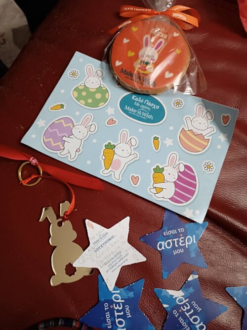 Τα μηνύματα-ευχές συνόδεψαν τα πασχαλινά δώρα που έλαβαν όλα τα παιδιά ευχής που βρίσκονται σε αναμονή για την εκπλήρωση της ευχής τους καθώς και τα birthday boxes που λαμβάνουν για τον εορτασμό των γενεθλίων τους.
