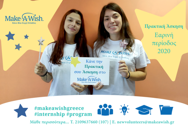 Εάν είστε και εσείς φοιτητής και επιθυμείτε να κάνετε την πρακτική σας άσκηση στο Make-A-Wish… τώρα έχετε την ευκαιρία να το κάνετε, όπως η Μαρία και η Ελπινίκη στο Τμήμα Ευχών!