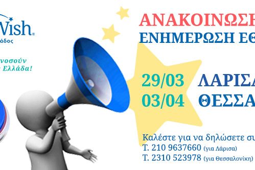 Το Make-A-Wish (Κάνε-Μια-Ευχή Ελλάδος) θα πραγματοποιήσει Ενημέρωση Νέων Εθελοντών στη Λάρισα και στη Θεσσαλονίκη!