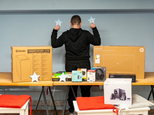 🛏️ Όταν μπήκε στο δωμάτιο ο Γ., ενθουσιάστηκε με το αυτοκόλλητο τρένο στον τοίχο και πήγε και το ακουμπούσε. Την προσοχή του τράβηξε και η πισίνα με τις μπάλες και έμεινε μέσα αρκετή ώρα εκεί. Μετά, ακολούθησαν τα δώρα, και όταν είδε το τρενάκι, ξετρελάθηκε και δεν ήθελε να το αφήσει.