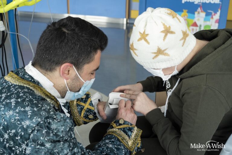 👑 Η νεράιδά της, της πρότεινε να εκπληρώσουν την ευχή άλλη στιγμή, που δεν θα βρίσκεται στο νοσοκομείο. Η Ε. απτόητη είπε: «Είμαι καλά, θέλω να γίνει η ευχή μου αύριο!». Την επόμενη μέρα, ένα πριγκιπόπουλο στεκόταν στο σαλόνι του νοσοκομείου. Στα χέρια του κρατούσε το κινητό της μικρής μας. Όταν άνοιξε το κουτί του, θα ορκιζόμασταν ότι είδαμε τους μουντούς τοίχους τού νοσοκομείου να αλλάζουν χρώμα… να φωτίζονται!