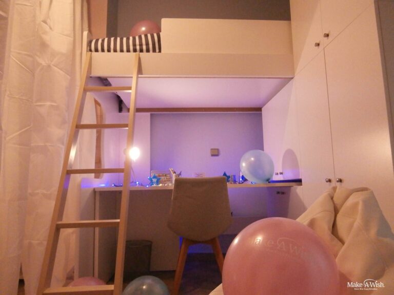 Τα εκφραστικά του μπλε μάτια άνοιξαν διάπλατα όταν άνοιξε την πόρτα, φωνάζοντας «Ουάααααου…» Χωρίς κανένα δισταγμό, έτρεξε να σκαρφαλώσει στο κρεβάτι που τόσο πολύ ήθελε!