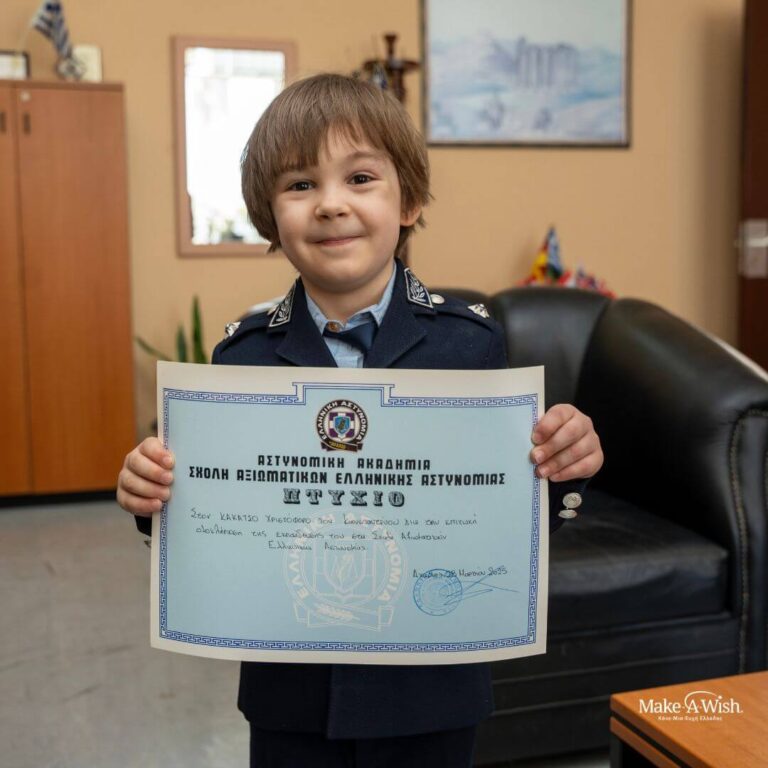 Ήταν μια εμπειρία που δεν θα ξεχάσει ποτέ. Ο Παναγιώτης έζησε το όνειρό του και τώρα, γεμάτος δύναμη και αισιοδοξία, έχει έναν ακόμη στόχο: να εργαστεί σκληρά, ώστε μια μέρα να φορέσει ξανά τη στολή – αυτή τη φορά, ως πραγματικός αστυνομικός!