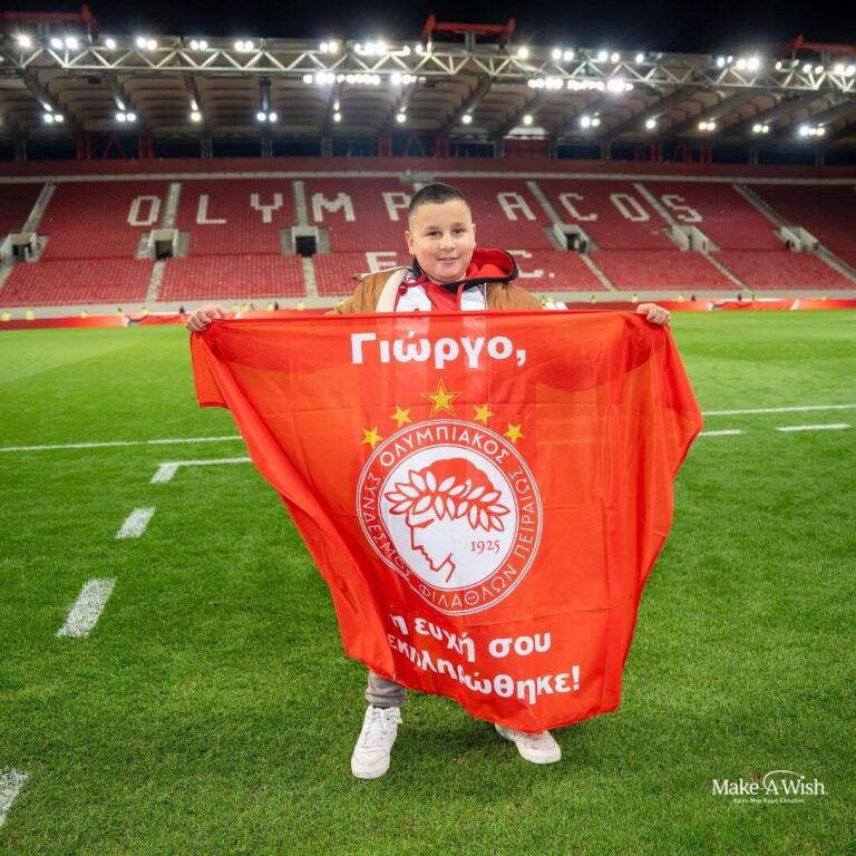 ⚽️ Ο Γιώργος κατέβηκε στο γήπεδο και είδε μπροστά του τους παίκτες του Ολυμπιακού. Τα μάτια του έλαμπαν καθώς μιλούσε μαζί τους, έπαιρνε αυτόγραφα και φωτογραφιζόταν δίπλα στα είδωλά του.