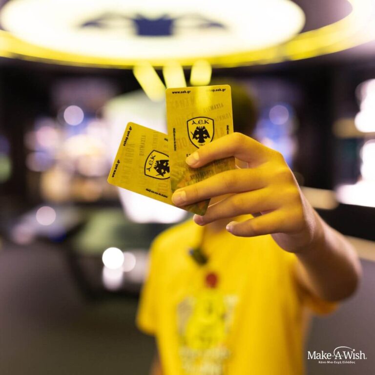 Ο Α., ένα 14χρονο αγόρι, ευχήθηκε να αποκτήσει εισιτήρια διαρκείας για την ΑΕΚ. Η ευχή του πραγματοποιήθηκε σε ένα τριήμερο στην Αθήνα με την οικογένειά του, όπου επισκέφθηκαν το μουσείο της ΑΕΚ και απόλαυσε δωράκια από τη μπουτίκ της ομάδας.