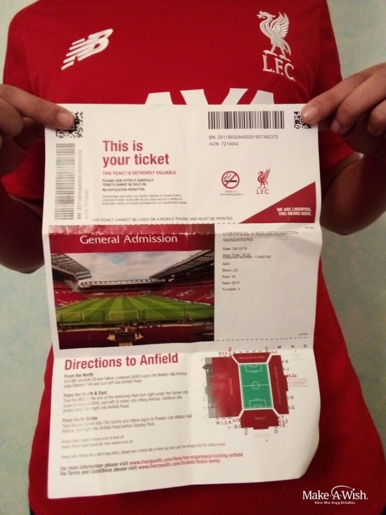 Ο Χρήστος αγαπά την μπάλα και αθλείται καθημερινά. Ευχήθηκε να παρακολουθήσει ζωντανά έναν αγώνα της Liverpool και οι νεράιδες εκπλήρωσαν την ευχή του, προσφέροντας του το χρυσό εισιτήριο μια πραγματική εμπειρία ζωής.