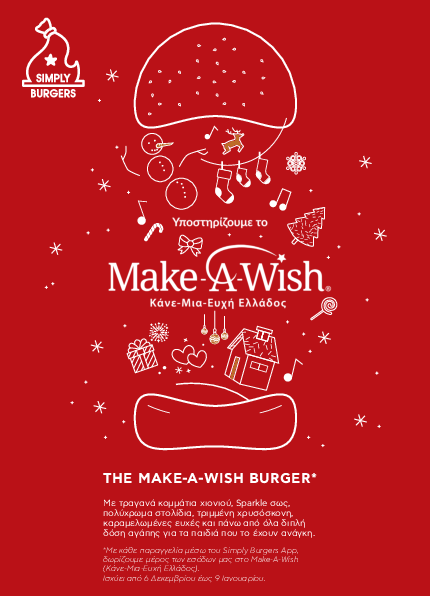 Με μια ιδιαίτερη κίνηση επιλέγουν τα Simply Burgers να στηρίξουν για 7η συνεχόμενη το Make-A-Wish (Κάνε-Μια-Ευχή Ελλάδος), χαρίζοντας απλόχερα διπλή δόση αγάπης στα παιδιά που το έχουν ανάγκη…