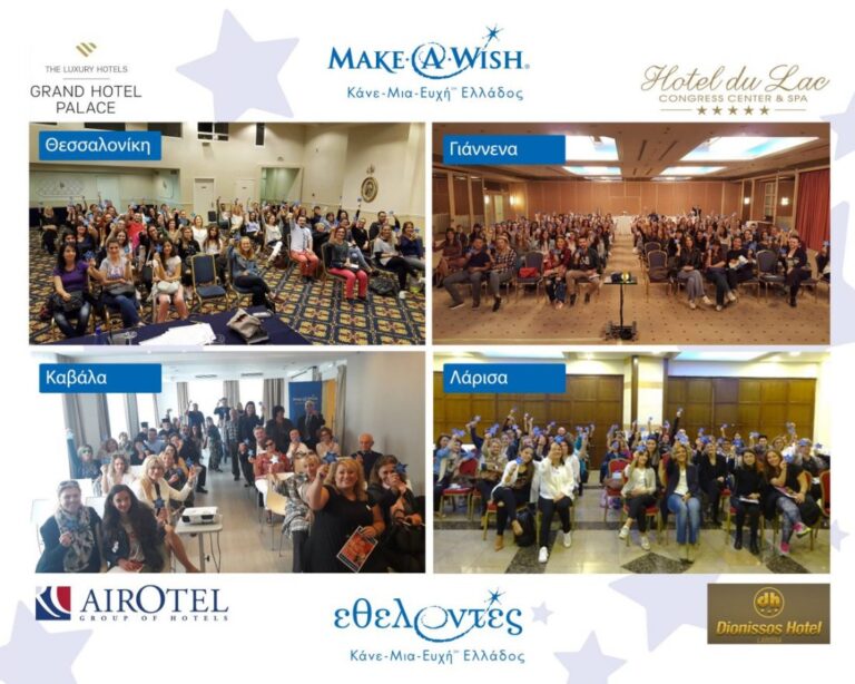 Με μεγάλη επιτυχία πραγματοποιήθηκαν οι ενημερώσεις νέων εθελοντών σε Θεσσαλονίκη, Καβάλα, Γιάννενα και Λάρισα όπου το Make-A-Wish έκανε πολλούς καινούργιους φίλους και πρεσβευτές του οράματός του! Σας ευχαριστούμε όλους για τον χρόνο και την αγάπη σας!