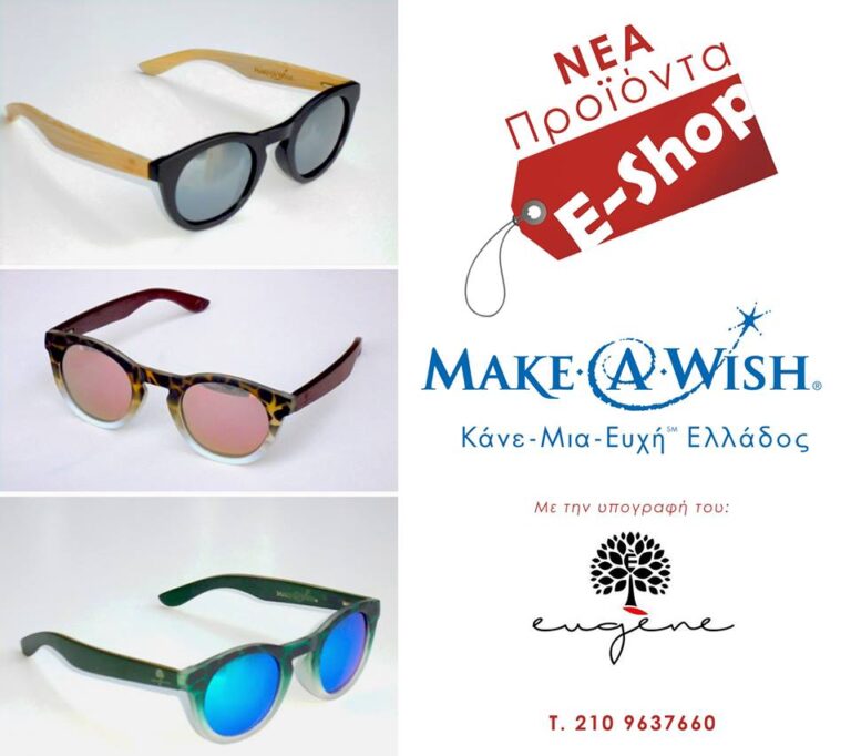 Προμηθευτείτε και εσείς τα 1α Ξύλινα Γυαλιά Ηλίου αφιερωμένα αποκλειστικά στο Make-A-Wish Greece (Κάνε-Μια-Ευχή Ελλάδος) σε διάφορα χρώματα με την υπογραφή του Eugene wood sunglasses and more!