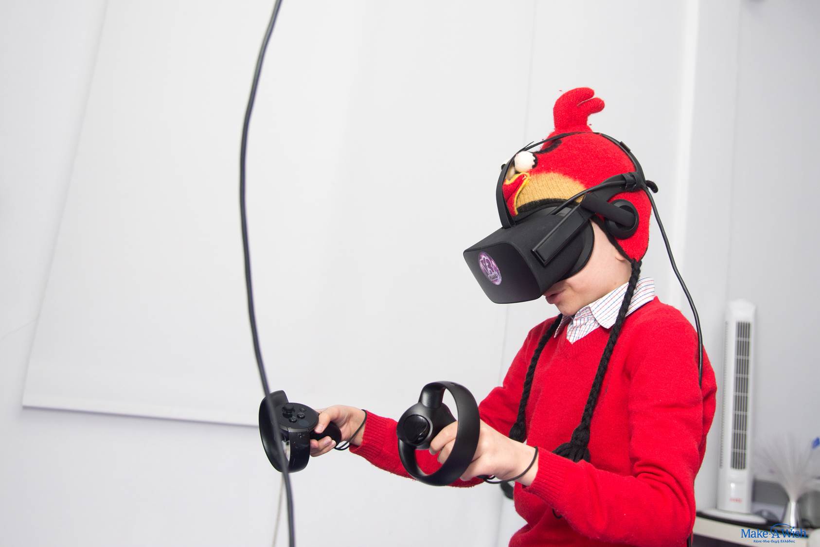 Η μεγάλη μέρα έφτασε, και ο Κωνσταντίνος δεν έβλεπε την ώρα να κρατήσει στα χεράκια του το χειριστήριο του πολυπόθητο PlayStation 4! Η καλή του νεράιδα Ηλέκτρα πήγε από τον ξενώνα για να τον συνοδέψει, ενώ το καλό ξωτικό Διονύσης έκανε τις απαραίτητες προετοιμασίες για να μπορέσει ο μικρός μας να ταξιδέψει «εικονικά» παντού… «Επισκέφθηκε» τα 7 θαύματα του κόσμου, «ανέβηκε» στο Everest, την υψηλότερη κορυφή της οροσειράς των Ιμαλαΐων , νίκησε στο δύσκολο αγώνα που έδωσε με τους «κακούς»… Και όλα αυτά μαζί με την αγαπημένη του αδελφή στο πλάι του, που τον βοηθούσε στο κάθε τι! Ακολούθησε ένα κυνήγι κρυμμένου θησαυρού, που σταδιακά του «αποκάλυψε» όλα όσα είχε ζητήσει και ήταν κρυμμένα στο χώρο! Η κονσόλα, τα χειριστήρια, τα αγαπημένα του παιχνίδια… Δεν πίστευε στα μάτια του! Ήταν όλα  επιτέλους δικά του! Και το μεγαλύτερο χαμόγελο ευτυχίας, ζωγραφίστηκε στο πανέξυπνο μουτράκι του… «Είναι η καλύτερη μέρα της ζωής μου», αναφώνησε, ενώ έσφιγγε στα χεράκια του την κονσόλα! Και αυτή, είναι και η καλύτερη ανταμοιβή για όλους εμάς στο Κάνε-Μια-Ευχή!!!  Αυτό το χαμόγελο και η ευτυχία που βλέπουμε στα μάτια των παιδιών μας…