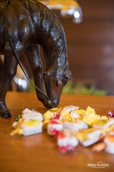 Μετά από ένα διασκεδαστικό κυνήγι θησαυρού, κατά τη διάρκεια του οποίου η μικρή μας ξετρύπωσε τα δωράκια, φυσικά όλα σχετικά με άλογα και την ιππασία, που οι νεράιδες της είχαν επιλέξει με αγάπη για εκείνη, έφτασε έξω από το στάβλο της Κοκότ. Μίας υπέροχης φοράδας με σκούρο καφετί χρώμα και πλούσια χαίτη! Η Ε. άπλωσε με άνεση το χεράκι της με την παλάμη ανοιχτή προς τα πάνω ως έμπειρη αμαζόνα, για να δώσει στην Κοκότ την ευκαιρία να τη μυρίσει, τα μάτια τους συναντήθηκαν και αυτό ήταν… Η στιγμή ήταν τόσο δυνατή και εμείς γίναμε μάρτυρες της σχέσης ανιδιοτελούς αγάπης που ξεκινούσε, του δεσίματος που θα είχαν μεταξύ τους και της δύναμης που θα έδινε η μία στην άλλη.