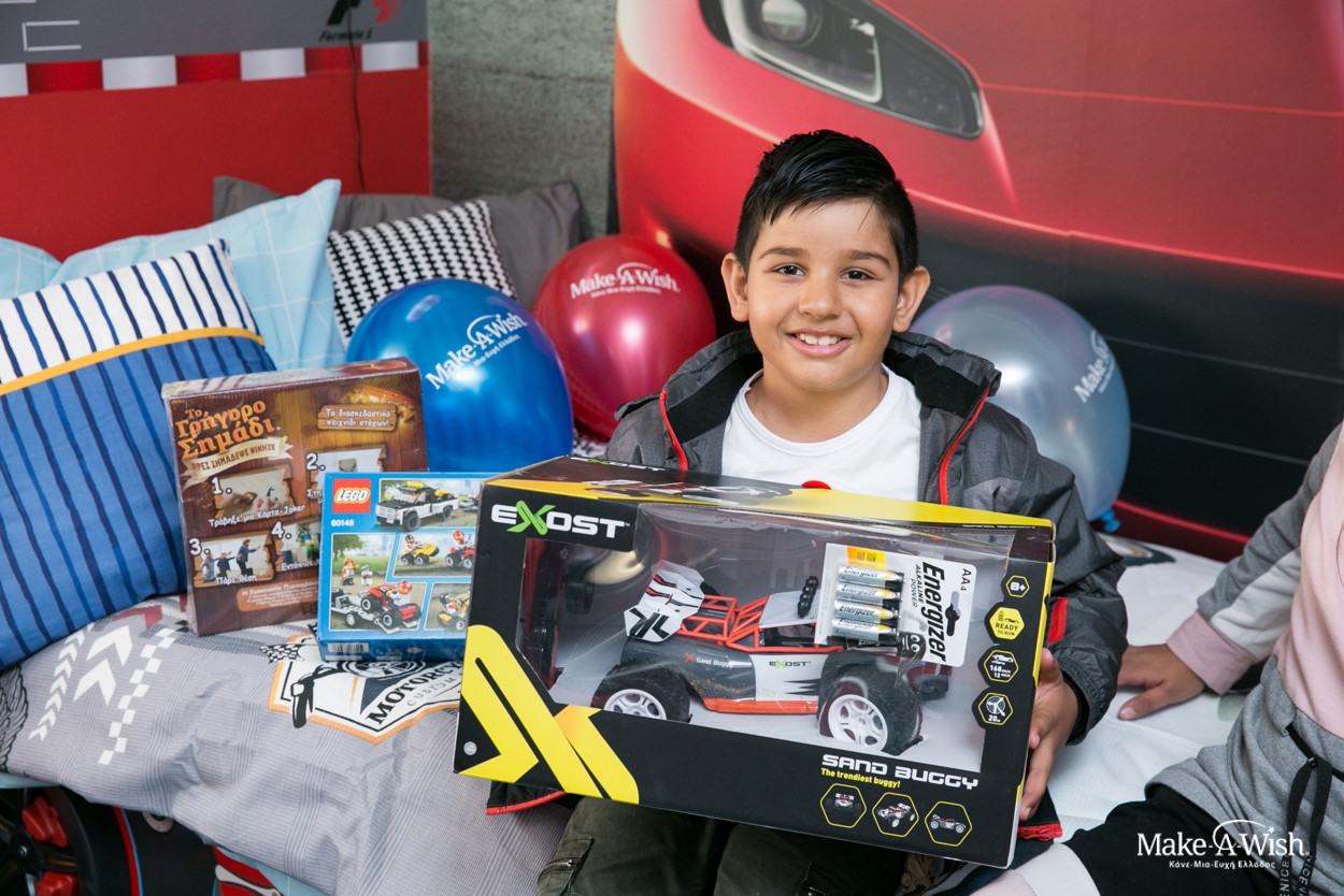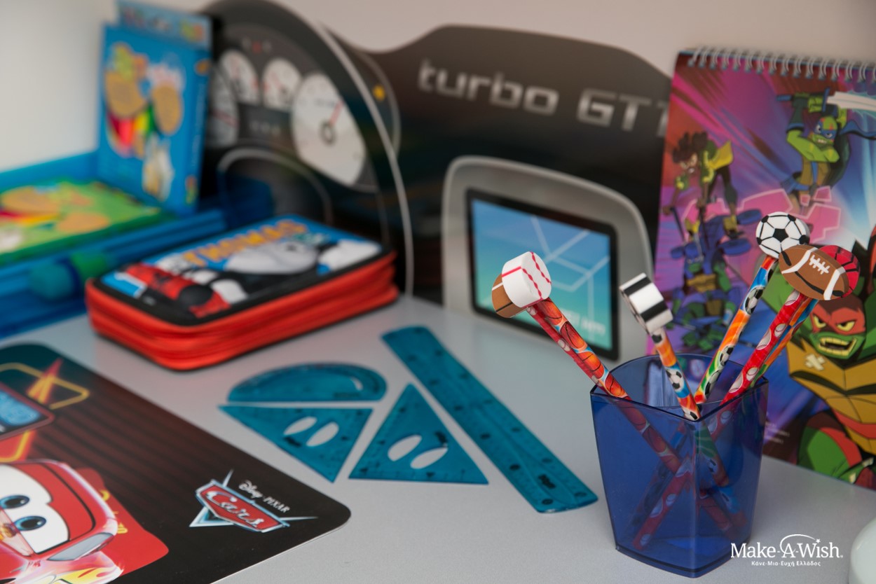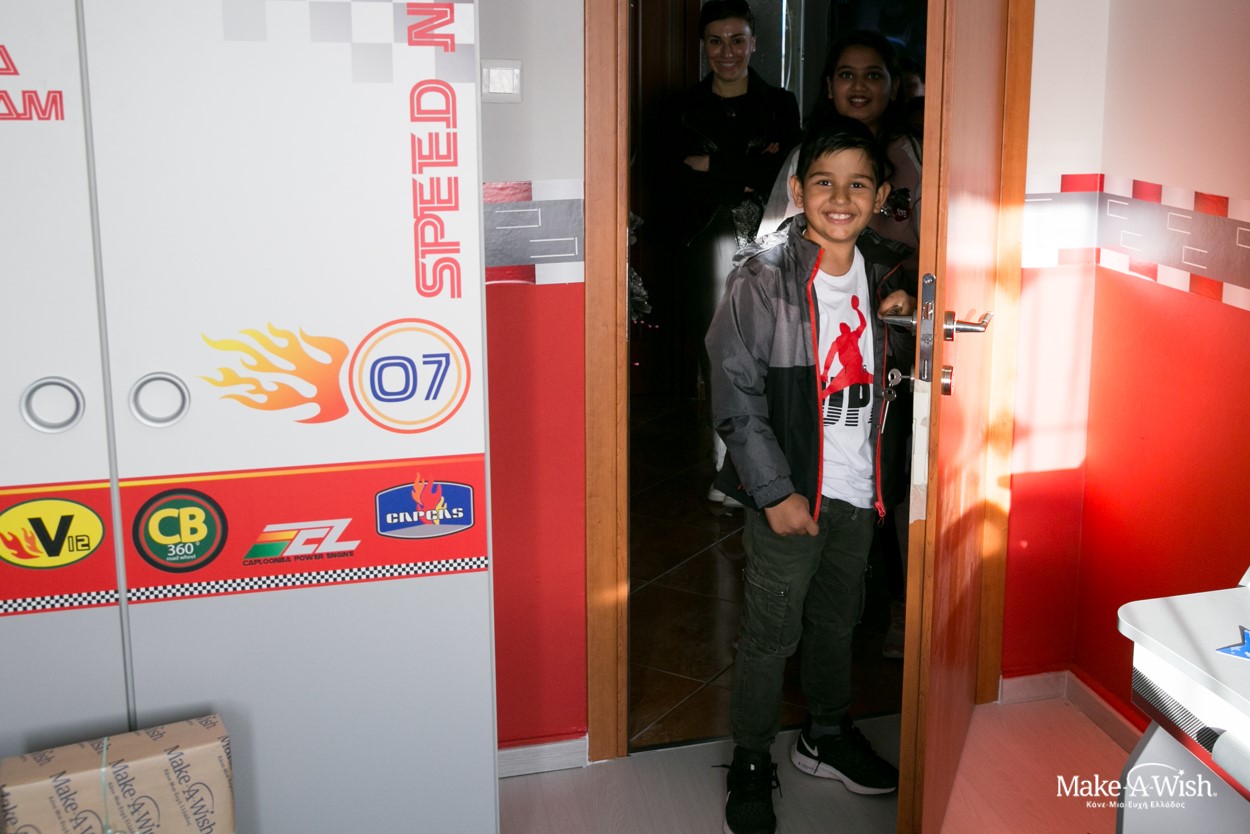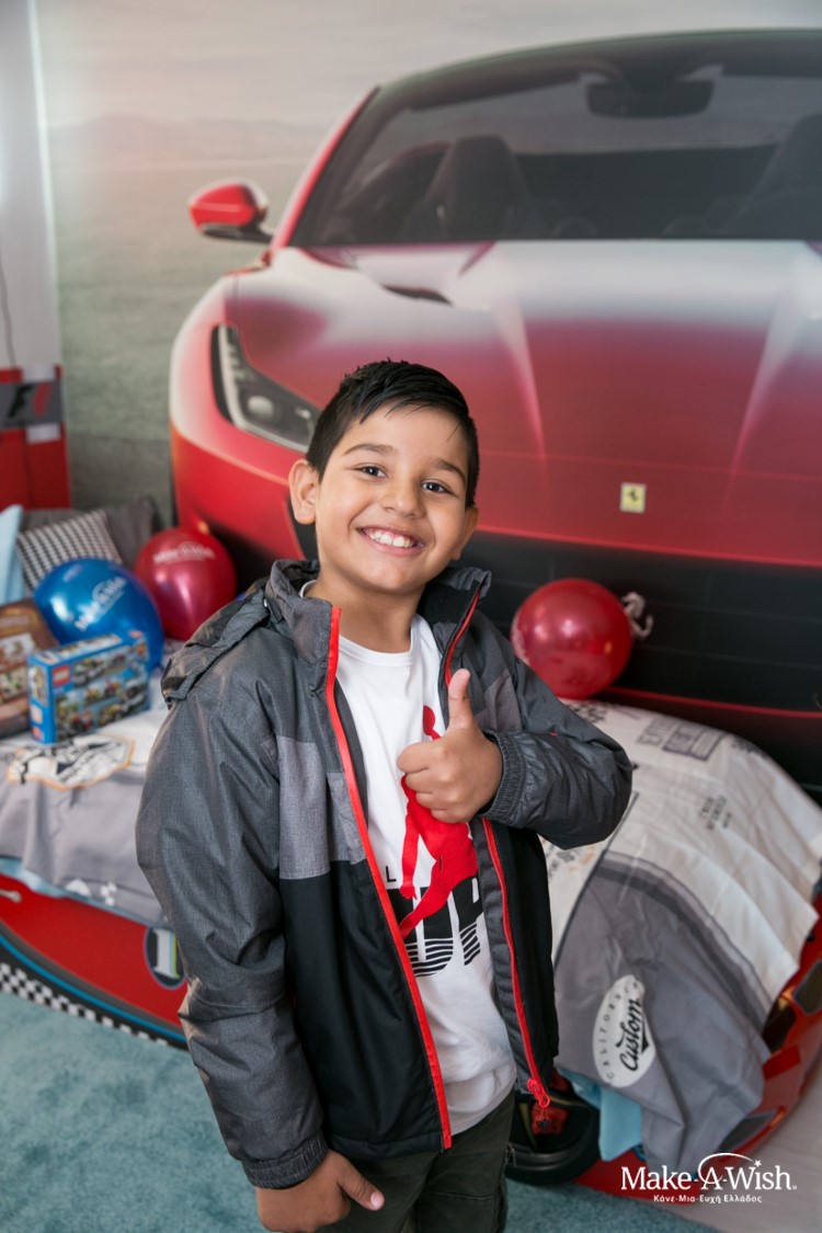 Όμως οι νεράιδες χρησιμοποίησαν την πολύτιμη νεραϊδόσκονη τους ώστε το αποτέλεσμα να είναι ακόμα πιο μαγικό. Μια γιγάντια, κατακόκκινη Ferrari διακοσμούσε τον τοίχο πάνω από το κρεβάτι του. Τοίχοι βαμμένοι στα χρώματα της Formula και έπιπλα βγαλμένα από αγώνες! Κάθε λεπτομέρεια ήταν φροντισμένη στην εντέλεια, με την καρέκλα να θυμίζει κάθισμα αγωνιστικού αυτοκινήτου και το φωτιζόμενο σήμα του αγαπημένου του αυτοκινήτου πάνω από το κεφαλάρι του κρεβατιού!