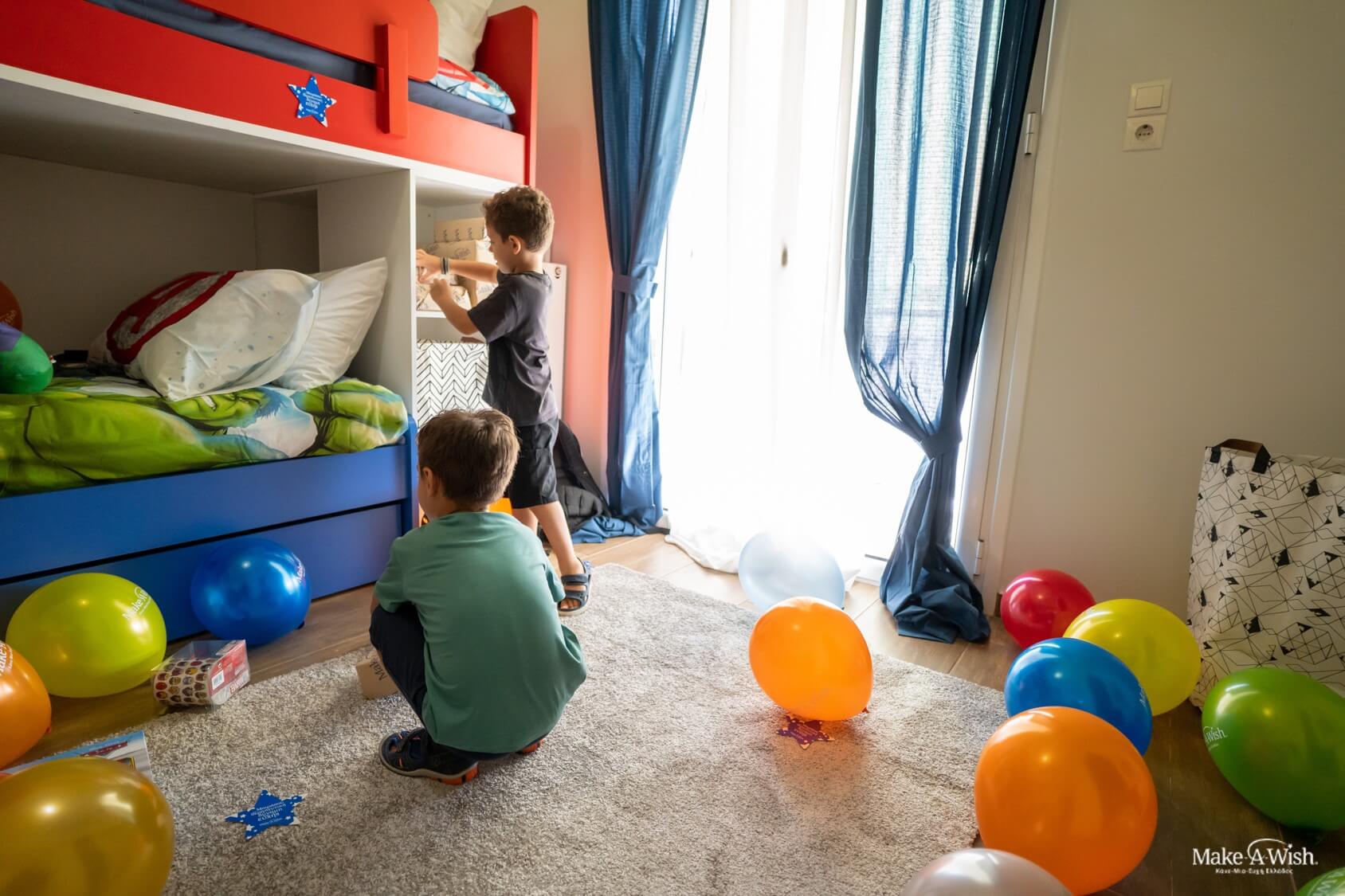Ο μικρός μας ζήτησε από τις νεράιδές του να μπορέσει να έχει ένα δωμάτιο γεμάτο με τους αγαπημένους του σούπερ ήρωες και αυτοκίνητα που αγαπά πολύ. Φανταζόταν ότι στο δωμάτιο αυτό θα παίζει συνεχώς μαζί με τον αδερφό του, θα σκαρώνουν σκανταλιές και όταν κουράζονται θα μπορούν να κοιμηθούν στην κουκέτα που θα ήταν όλη δική τους.