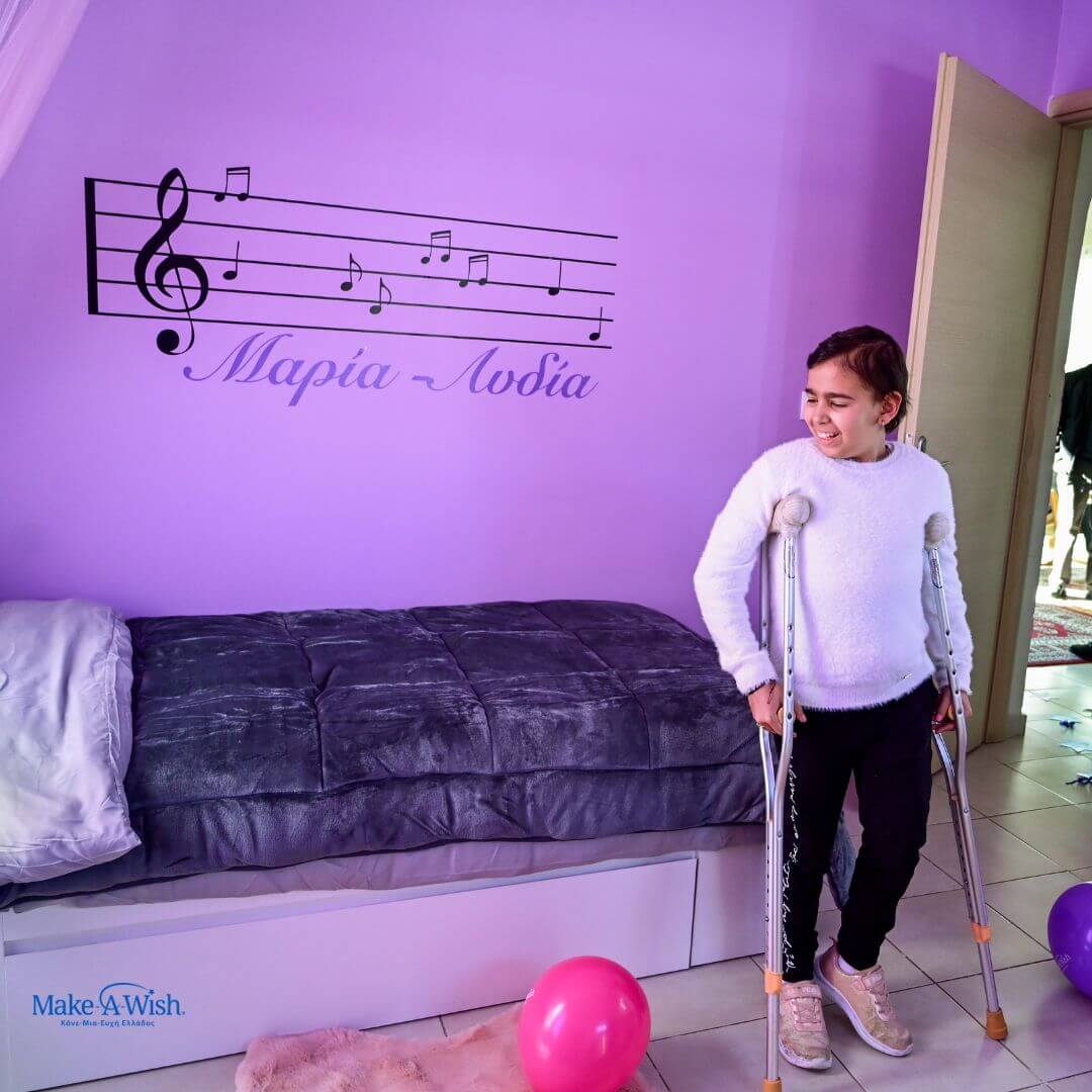 Η Μαρία-Λυδία είναι ένα κορίτσι ευγενικό, γλυκό και γεμάτο καλοσύνη. Ζει μέσα σε μια υπέροχη οικογένεια, και τα αδέλφια της δεν την αφήνουν στιγμή από τη φροντίδα και την αγάπη τους. Ωστόσο, αυτό που πάντα της έλειπε ήταν κάτι πολύ προσωπικό: ένας χώρος δικός της. Μέχρι τότε, κοιμόταν στο σαλόνι, αλλά όταν η ευχή της γεννήθηκε μέσα από το Make-A-Wish Ελλάδος, η οικογένειά της έκανε την υπέρβαση και της παραχώρησε το γονεϊκό υπνοδωμάτιο, για να γίνει το δικό της καταφύγιο.