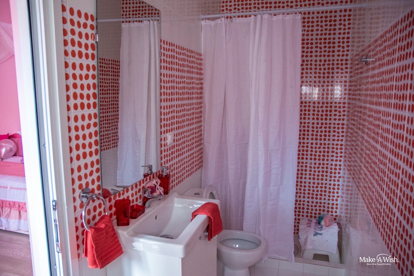 Χαρούμενες και ανακουφισμένες ξεκινήσαμε τις ετοιμασίες. Δεύτερο εμπόδιο για την εκπλήρωση της ευχής αποτέλεσαν οι τεχνικές εργασίες. Η κατάσταση του χώρου ήταν άσχημη και το γνωρίζαμε από την αρχή. Χρειάστηκαν πολλές προσφορές και συζητήσεις, τεχνικές λεπτομέρειες που μόνο η νεράιδα αρχιτέκτονας καταλαβαίνει, ακυρώσεις συνεργείων και εκ νέου προσφορές, άπειρα τηλεφωνήματα και email. Δεν μας σταματούσε τίποτα. Το χαμόγελο της Γιαμούρ ήταν καρφωμένο στο μυαλό μας. Μετά από πολλές εβδομάδες, οι εργασίες ξεκίνησαν, πολλοί επαγγελματίες συνεργάστηκαν επί πολλές ώρες και έπειτα από χρονοβόρες παρεμβάσεις, η μεταμόρφωση του δωματίου επετεύχθη! Και η ώρα πλησίαζε μετά από μήνες δουλειάς.
