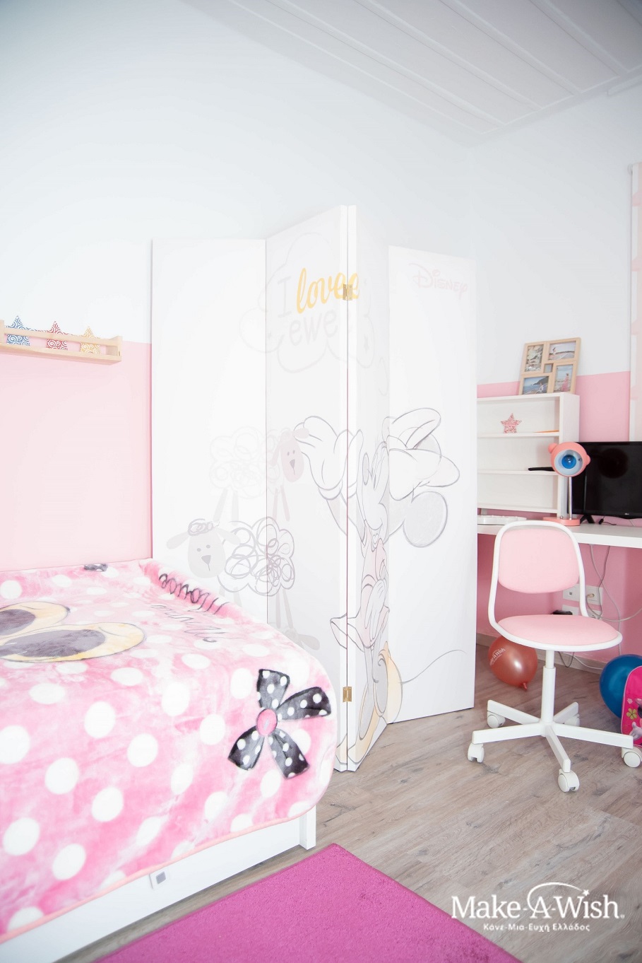 Και η πολυπόθητη ημέρα έφτασε. Η Αναστασία από την ανυπομονησία της ήταν έτοιμη να περάσει μέσα από την πόρτα! Όταν την άνοιξε δε, η αντίδρασή της ήταν ανεκτίμητη! Άρχισε να τρέχει και να προσπαθεί να εξερευνήσει κάθε σημείο και κάθε έκπληξη που μπορεί να έκρυβε το καινούριο της δωμάτιο. Έπαιρνε τα ξωτικά από το χέρι, προσκαλώντας τα στον αυτοσχέδιο χορό της που εκείνη τη στιγμή σκαρφιζόταν. Η Minnie ήταν παντού μέσα στο δωμάτιο και η μικρή έλαμπε από χαρά!