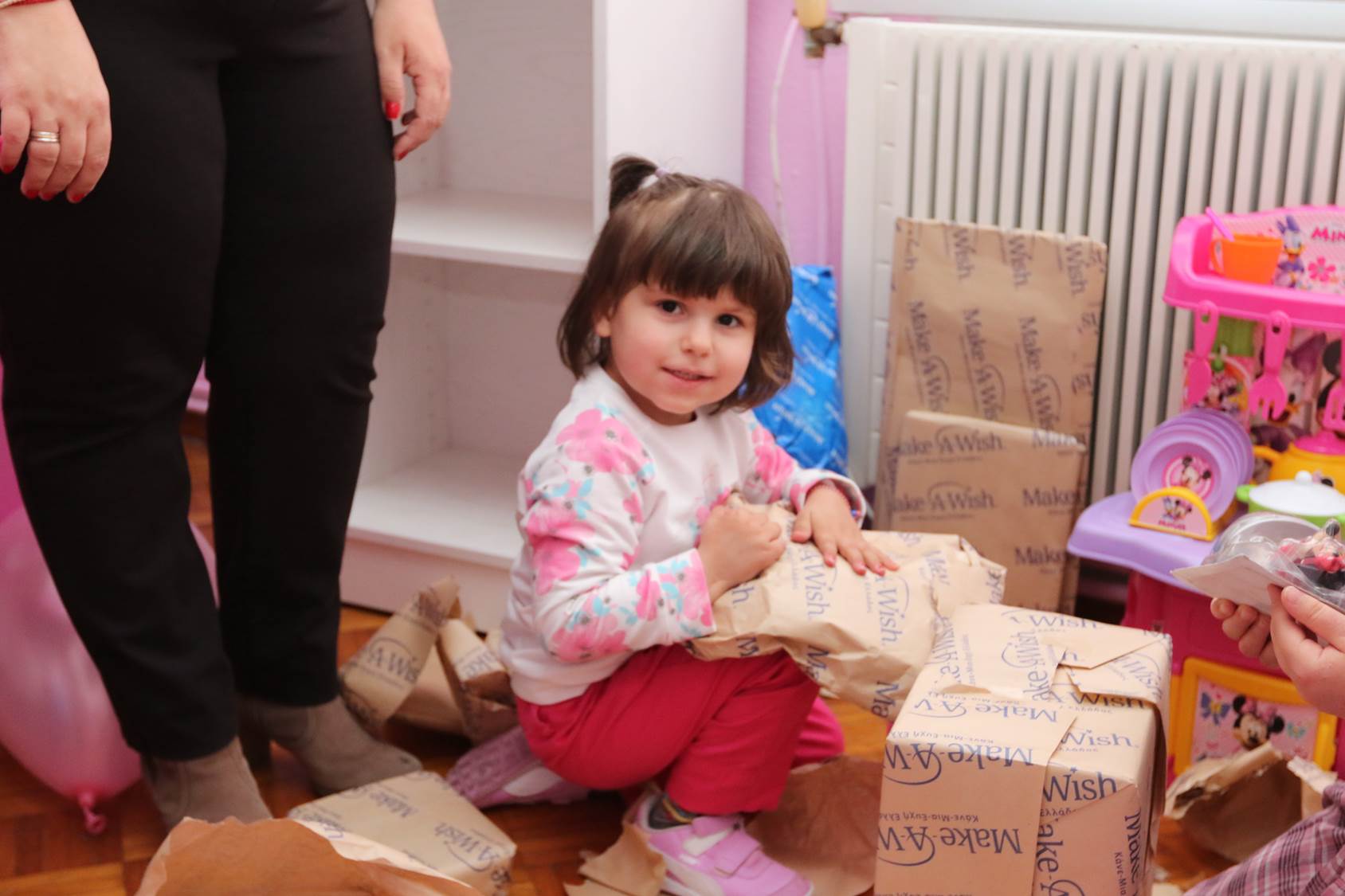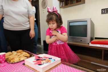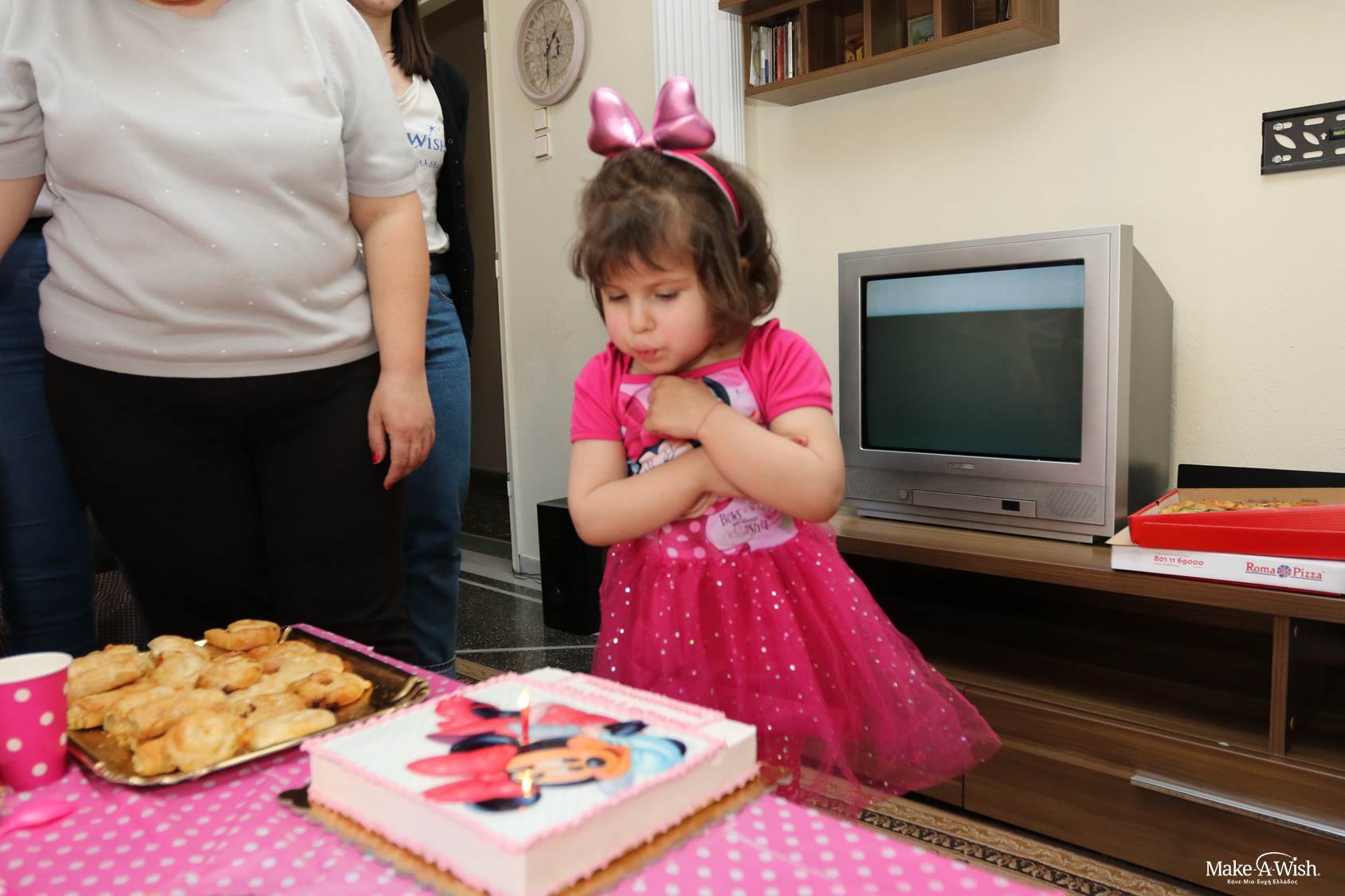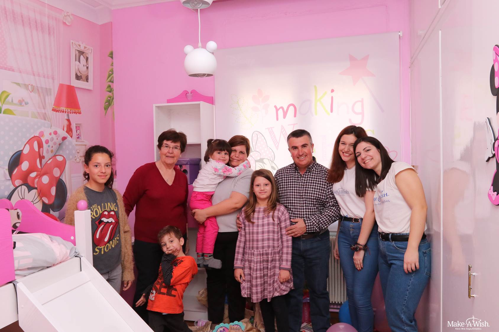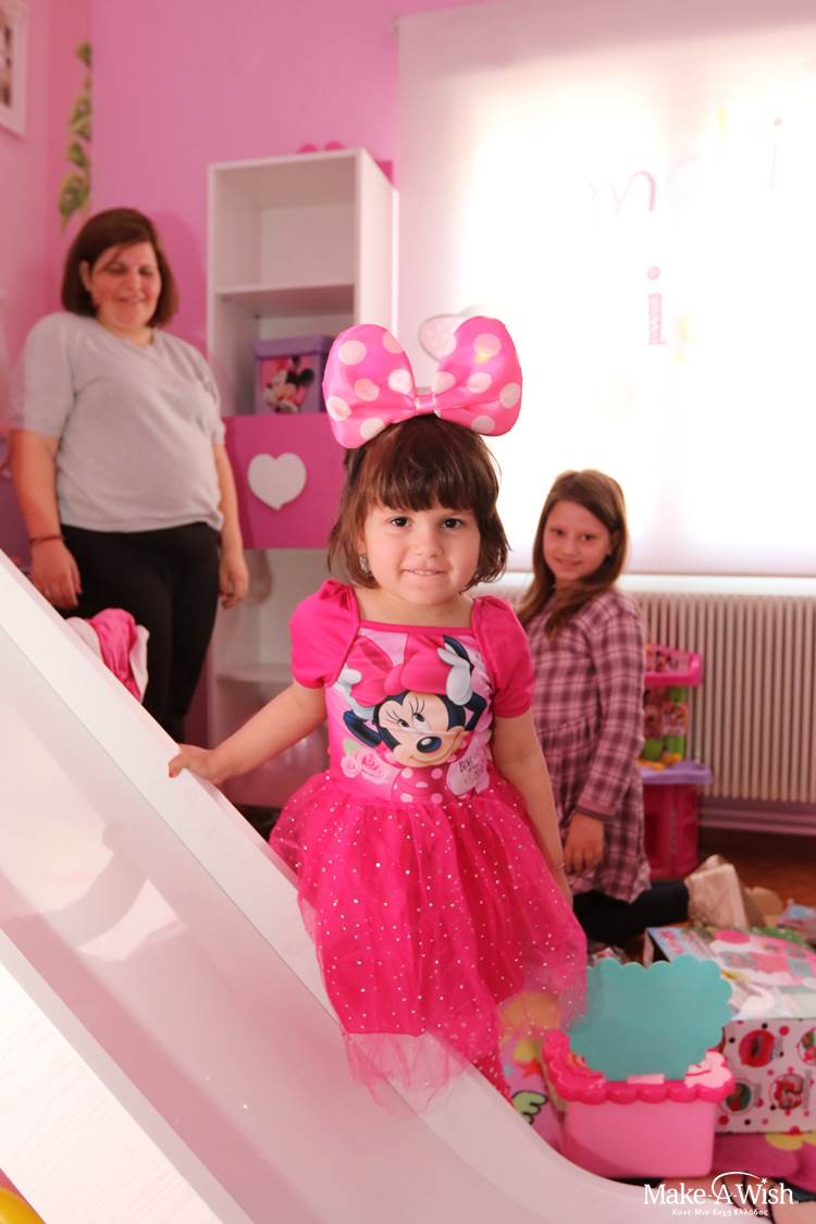 Δεν ήθελε με τίποτα να βγει από το δωμάτιό της. Μας αγκάλιαζε συνέχεια και μας έλεγε πόσο χαρούμενη είναι που πλέον θα κοιμάται με τη Minnie! Τη ρωτήσαμε αν είναι ευτυχισμένη και τότε πετάχτηκε από τη χαρά της και μας φώναξε ένα μεγάλο «ΝΑΙΙΙ!» Αυτή η απάντηση απόλυτης ευχαρίστησης έφερε δάκρυα χαράς σε όλους μας και ιδιαίτερα στους γονείς της, που συγκινημένοι έβλεπαν την κόρη τους μετά τον αγώνα της ενάντια στη λευχαιμία να είναι πλέον ευτυχισμένη και να έχει ένα παραμυθένιο δωμάτιο, όπως το ονειρευόταν. Ένα δωμάτιο ταιριαστό για μια μικρή ηρωίδα!