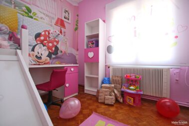 Όταν μπήκε μέσα, άνοιξε διάπλατα τα ματάκια της και δε χόρταινε να κοιτάζει το καινούργιο της δωμάτιο. Έλαμπε ολόκληρη από τη χαρά της! Η Minnie ήταν παντού: στους τοίχους, στο παράθυρο, στο χαλί, στα σεντόνια, στη ντουλάπα, στα φωτιστικά, στα μπλοκ ζωγραφικής, στα κουτιά παιχνιδιών… Η μικρούλα μας μέχρι και δικό της τραπεζάκι με καρεκλίτσες και δική της κουζίνα απέκτησε, όλα με τη Minnie φυσικά!