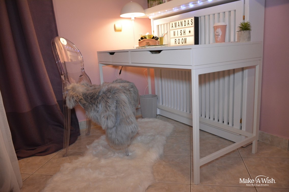 Μας εκμυστηρεύτηκε το όνειρό της και εμείς βάλαμε μπροστά ευθύς αμέσως την εκπλήρωση. Προχωρήσαμε μαζί βήμα-βήμα, ανταλλάξαμε ιδέες και φωτογραφίες διακόσμησης, λύσαμε όλες τις απορίες της Αμάντα που προέκυψαν. Η εμπλοκή της στις ετοιμασίες του νέου της δωματίου, της δημιούργησαν περαιτέρω προσμονή και αγωνιούσε κάθε λεπτό για το τελικό αποτέλεσμα!