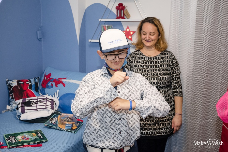 Τον προτρέψαμε να εξερευνήσει το δωμάτιο. Όταν σιγά-σιγά ξεθάρρεψε, άρχισε με τα χέρια του να μιμείται τις αράχνες, τις πιστές φίλες του λατρεμένου του ήρωα. Κάθισε στην καρέκλα του, άνοιξε τα δώρα του και, χωρίς να αφήσει τη μικρή του αδερφή από το πλάι του, έπαιζε με τα μπαλόνια που κοσμούσαν το κρεβάτι του. Αυτό που τον μάγεψε ήταν η καινούρια μάσκα του Spiderman που του είχαν αφήσει οι νεράιδες. Τη φόρεσε και μεταμορφώθηκε ο ίδιος σε ήρωα από ταινία. Ξεκίνησε να πετάει φανταστικούς ιστούς και να κινείται μιμούμενος τον λατρεμένο του ήρωα.