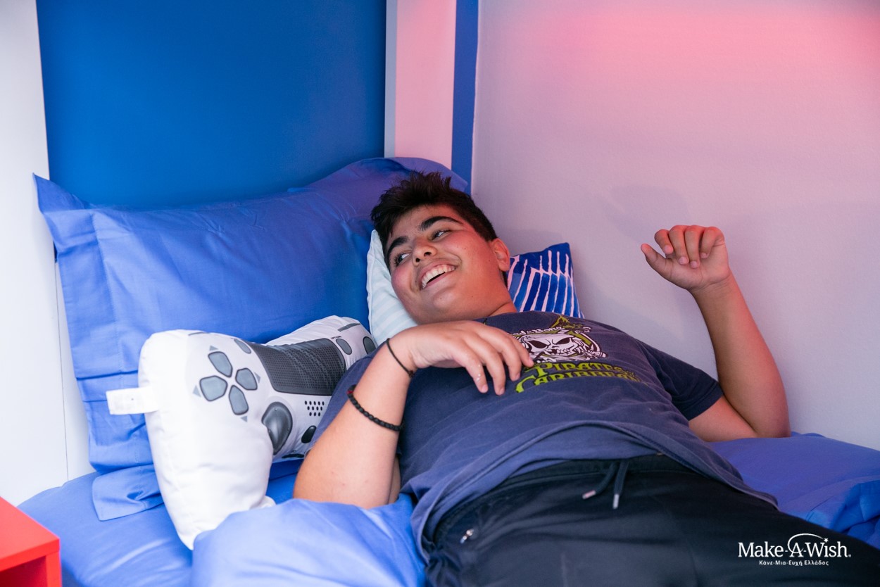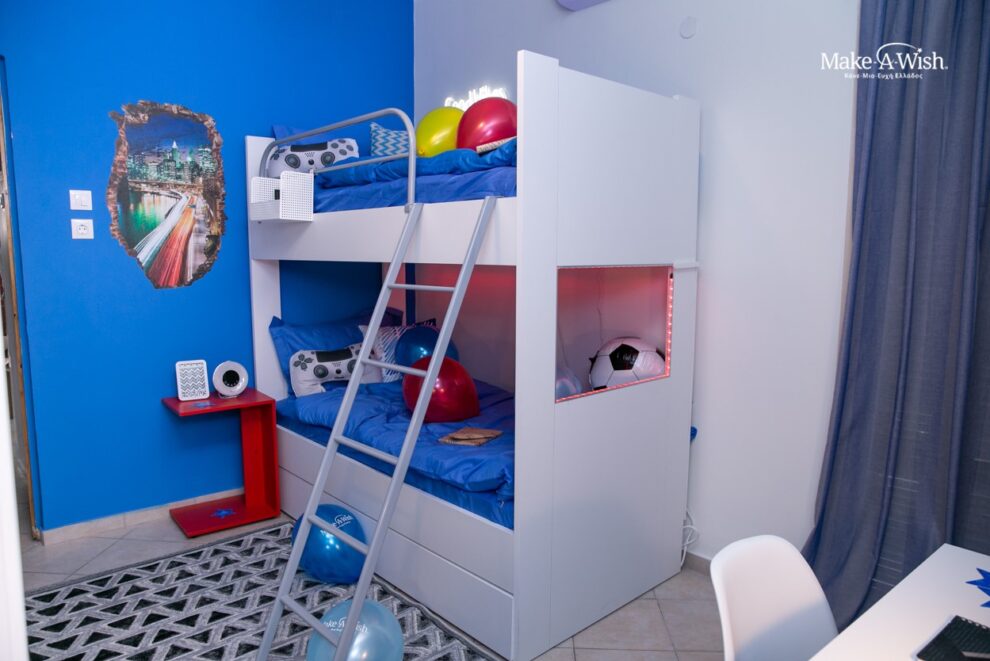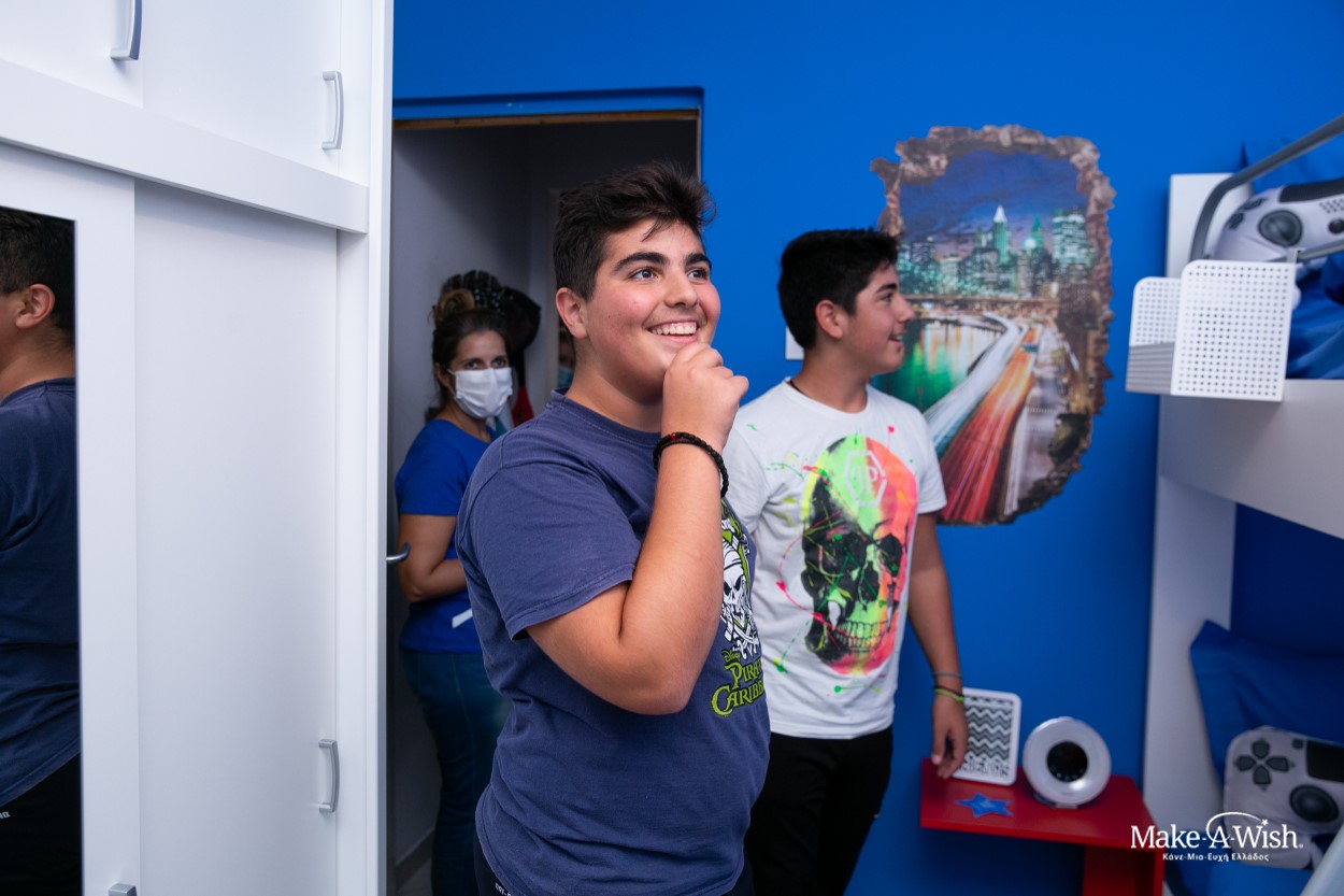 Μόλις αντίκρυσε το δωμάτιό του, τα μάτια του άστραψαν και φωτίστηκε το πρόσωπό του από το χαμόγελό του. Τα «ουαου» ήταν επαναλαμβανόμενα! Μαζί με τον αδερφό του, άρχισαν να εξερευνούν και την παραμικρή λεπτομέρεια κι ο ενθουσιασμός τους για το καθετί ήταν τόσο έκδηλος, που μας συμπαρέσυρε όλους σε ένα κλίμα χαράς και ευφορίας.
