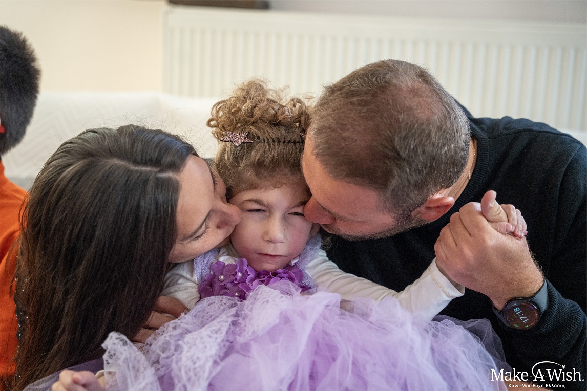 Η Νάγια είναι ένα κορίτσι γεμάτο φως, που είχε μεγάλη ανάγκη ένα αμαξίδιο, ειδικά σχεδιασμένο για εκείνη. Μπορεί η ευχή της να εκφράστηκε μέσα από τα χείλη των γονιών της, καθώς η ίδια δεν έχει λόγο, αλλά δεν υπήρχε καμία αμφιβολία στις νεράιδες πως αυτό θα την έκανε πραγματικά χαρούμενη. Οι νεράιδες χρησιμοποίησαν πολλή νεραϊδόσκονη και έβαλαν τα δυνατά τους, προκειμένου να της χαρίσουν μια ξεχωριστή μέρα, γεμάτη εκπλήξεις και δώρα. Διοργάνωσαν μια μικρή γιορτή στο σπίτι τους, με πολλές εκπλήξεις για εκείνη. Πολύχρωμα μπαλόνια γέμισαν το σπίτι και φυσικά, το καινούριο της αμαξίδιο ήταν εκεί. Η Νάγια, ντυμένη με το υπέροχο φόρεμά της, άρχισε να αποκαλύπτει τα δώρα της και δεν έχανε ευκαιρία να κινείται στους ρυθμούς της μουσικής – πάντα με την πολύτιμη βοήθεια των γονιών της. Οι νεράιδες ήταν δίπλα της συνεχώς, με όλη την αγάπη και τη φροντίδα τους. Το σπίτι είχε πλημμυρίσει με γέλια και χαρά. Το αμαξίδιο αυτό σηματοδοτούσε μια νέα αρχή, καθώς θα διευκόλυνε σημαντικά την καθημερινότητά της και θα μπορούσε πλέον να απολαμβάνει και τις βόλτες, που τόσο της αρέσουν. Η μητέρα της, συγκινημένη, μας είπε πόσο σημαντική ήταν όλη αυτή η επαφή με το Make-A-Wish, κυρίως γιατί αισθανόταν ότι δεν είναι μόνη της. Ο καθημερινός αγώνας με τις δυσκολίες της ασθένειας της Νάγιας θα είναι πλέον πιο εύκολος, με το ειδικό της αμαξίδιο.