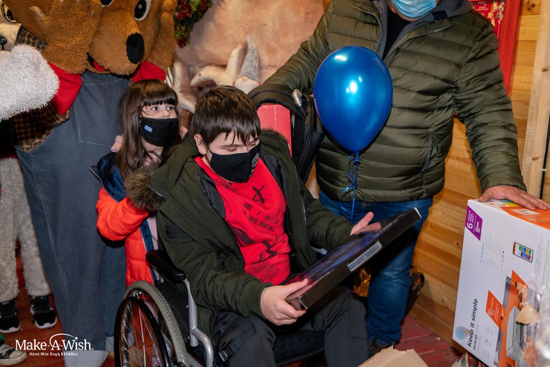 Ο Γιώργος δεν είχε την παραμικρή ιδέα ότι σε κάθε ένα θεματικό σπιτάκι βρισκόταν κρυμμένη… Η ΕΥΧΗ ΤΟΥ! Κοιτούσε μαγεμένος γύρω του και απολάμβανε το στολισμένο τοπίο. Μπαίνοντας στο πρώτο σπιτάκι, βρισκόταν η πρώτη έκπληξη. Η πρώτη και η καλύτερη… το laptop του! Ο Γιώργος «έσκασε» ένα τεράστιο χαμόγελο κάτω από τη μάσκα. «ΝΑΙ!», μας απάντησε με ενθουσιασμό, όταν τον ρωτήσαμε αν είναι έτσι ακριβώς όπως το ήθελε.