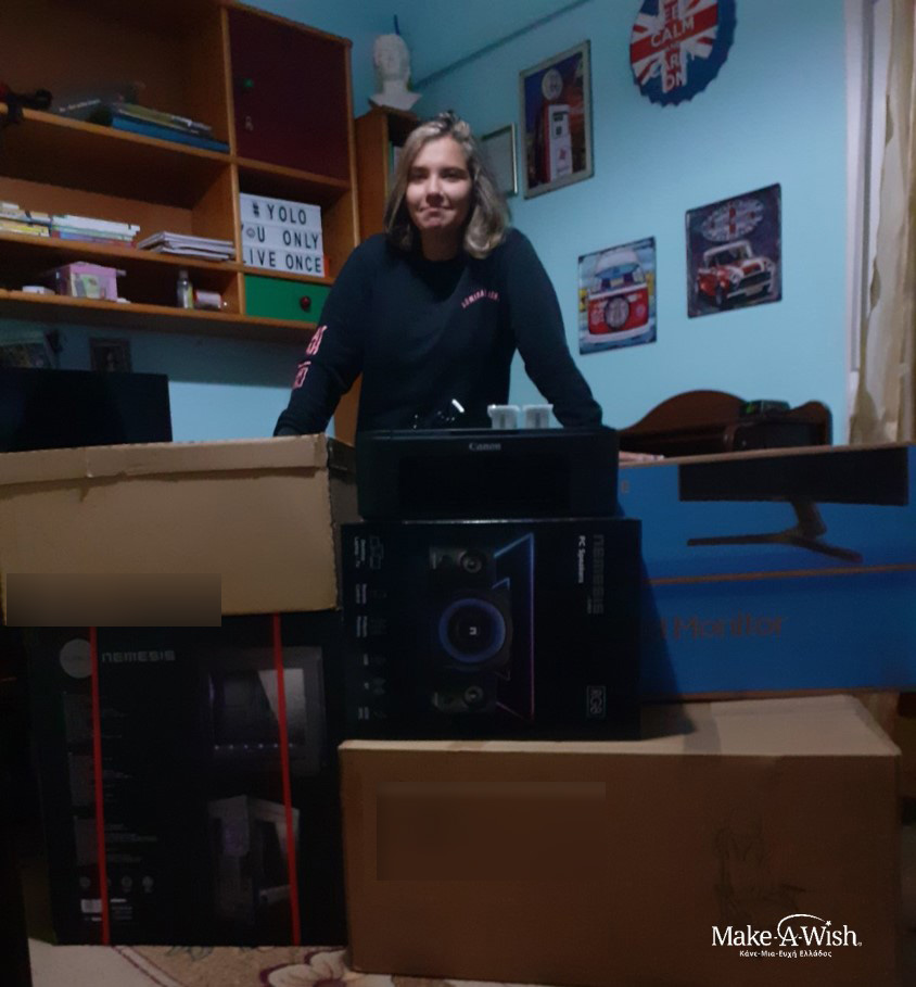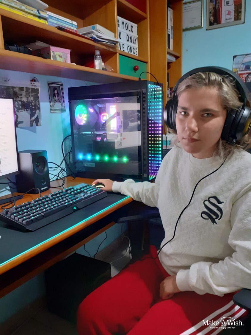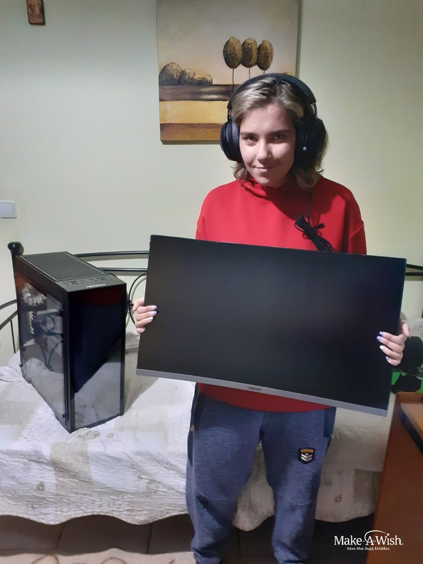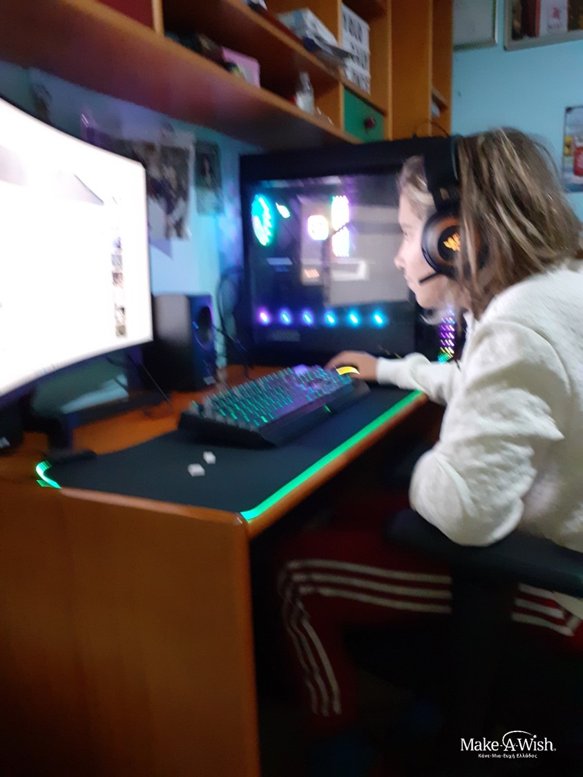 Ως ταλαντούχα gamer ευχήθηκε να αποκτήσει ένα αντίστοιχο setup. Ώριμη και κατασταλαγμένη καθώς είναι, ήξερε πολύ καλά τι ήθελε. Στην αναζήτηση του υπολογιστή, που θα ήταν ιδανικός για εκείνην, δεν ήταν μόνη της. Μαζί με τον δίδυμο αδερφό της, υπήρξαν εξαιρετικοί συνομιλητές των ειδικευμένων τεχνικών του Κάνε-Μια-Ευχή. Κατόπιν πολλών διαβουλεύσεων και συζητήσεων, μαζί ως μία υπέροχη ομάδα, αποφάσισαν κομμάτι-κομμάτι τι ακριβώς θα ζητούσε από τις νεράιδες το πανέμορφο κορίτσι μας.
