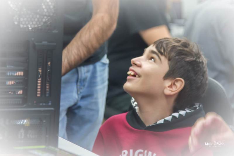 Πέρασε ένας χρόνος από την στιγμή που ο Βαγγέλης μάς εκμυστηρεύτηκε την πιο βαθιά του επιθυμία, να αποκτήσει ένα gaming υπολογιστή, και μάλιστα, κομμάτι-κομμάτι. Ήθελε να τον συναρμολογήσει και στη συνέχεια να περνάει ευχάριστα την ώρα του παίζοντας παιχνίδια. Ο Βαγγέλης είναι ένας πραγματικός μαχητής. Παλεύει με την απλαστική αναιμία, την ασθένεια που τον ταλαιπωρεί εδώ και καιρό, παλεύει όμως και στην πίστα του αγαπημένου του ηλεκτρονικού παιχνιδιού, League of Legend. Έχει μάθει να αγωνίζεται και ήταν τιμή μας να γίνουμε «σύντροφοί του στη μάχη». Νεράιδες και ξωτικά ξεκίνησαν την έρευνα για να βρουν τα κατάλληλα κομμάτια για τον υπολογιστή που θα ανταποκρινόταν πλήρως στο όνειρο του παιδιού. Και αφού βεβαιωθήκαμε ότι είχαμε αυτά ακριβώς που χρειαζόμασταν, προγραμματίσαμε την ημέρα που θα εκπληρωνόταν η ευχή. Ο Βαγγέλης και η οικογένειά του, με τη συνοδεία εθελοντών, ξεκίνησαν με άγνωστο για εκείνον προορισμό. Φυσικά, όλα ήταν προγραμματισμένα μέχρι την τελευταία λεπτομέρεια, αλλά θα ήταν μια μεγάλη έκπληξη για τον Βαγγέλη. Στη διαδρομή μπορούσαμε να διακρίνουμε την ανυπομονησία στο βλέμμα του. Επιτέλους έφτασαν στην εταιρεία όπου θα συναρμολογούσε τον υπολογιστή, όπως ακριβώς το είχε φανταστεί. Κομμάτι-κομμάτι, έφτανε ένα βήμα πιο κοντά στο όνειρό του. Όταν τελείωσαν πήραν τον υπολογιστή και κατευθύνθηκαν προς το TGI Fridays, όπου τους περίμενε ένα θαυμάσιο γεύμα. Μετά από λίγο ήρθε και η τούρτα του. Ο Βαγγέλης ενθουσιάστηκε, γιατί δεν το περίμενε και έσβησε το κεράκι του, που σήμανε την εκπλήρωση της ευχής του! Μια υπέροχη ημέρα χαράς και εκπλήξεων έφτασε στο τέλος της, όμως τα καλύτερα ξεκινούσαν… Η ζωή βρισκόταν μπροστά του. Έχει να δώσει πολλούς αγώνες ακόμα και θα συνεχίσει να αγωνίζεται, μέχρι να βγει νικητής. Βαγγέλη, σου ευχόμαστε καλά παιχνίδια!