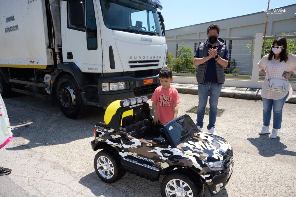 Η ασθένειά του, που τόσο μάχιμα έχει σταθεί απέναντί της, πέρασε σε δεύτερη μοίρα. Προτεραιότητα είχαν τη μέρα εκείνη οι νεράιδες, τα αδέλφια, οι φίλοι του και μια ευχή του που εκπληρώθηκε! Το τζιπ του ήταν όπως ακριβώς το ονειρεύτηκε: μαύρο με στοιχεία παραλλαγής και είχε πινακίδα με το όνομα του. Τον περίμενε σε ένα άνοιγμα του δρόμου από το Πάρκο Κυκλοφοριακής Αγωγής προς το σπίτι του. Το δικό του αυτοκίνητο “έκρυβε” και ένα ακόμα αγαπημένο του όχημα, ένα πραγματικό απορριμματοφόρο που πάντα τον εντυπωσίαζε! Ο οδηγός του απορριμματοφόρου, με συνοδηγό τον μεγάλο του αδελφό, τον συνόδευσε μέχρι την αυλή του σπιτιού του, παραδίδοντας τον Γιάννη στην οικογένεια και τους φίλους του!