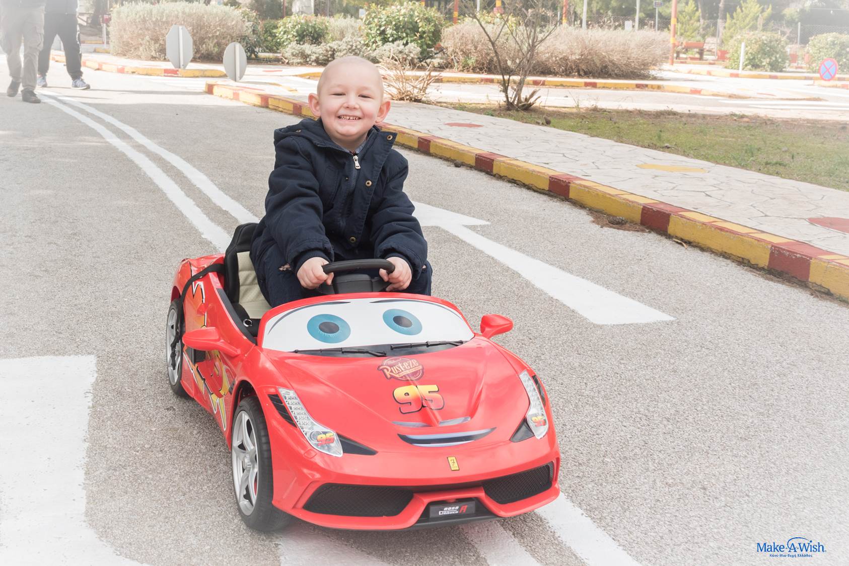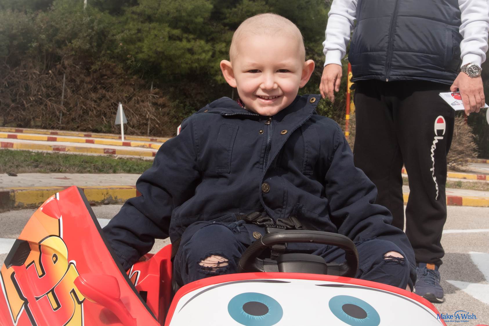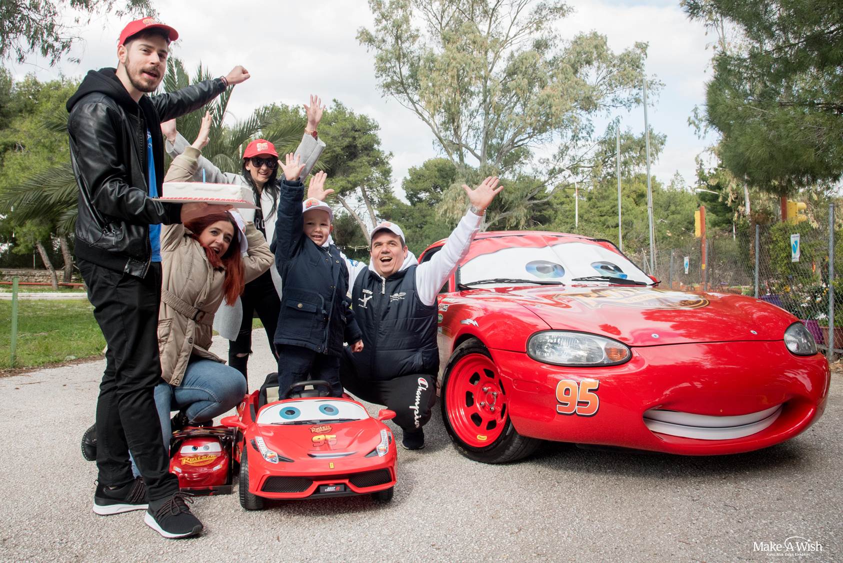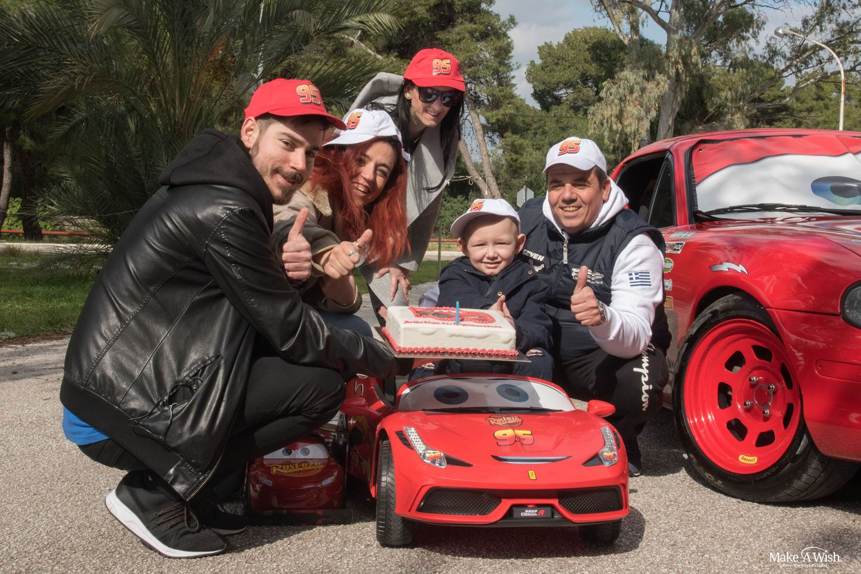 Την ημέρα της εκπλήρωσης της ευχής του, τον Νικόλα τον περίμενε μια επιπλέον τεράστια έκπληξη! Έξω από τον ξενώνα όπου φιλοξενείται όσο βρίσκεται στην Αθήνα για τις θεραπείες του, αντίκρισε κάτι τελείως αναπάντεχο που τον άφησε άφωνο: ένα μεγάλο, κατακόκκινο, κανονικό αυτοκίνητο Μακουίν! Ο Νικόλας δεν μπορούσε να πιστέψει στα μάτια του! Και όμως υπήρχε! Ο ιδιοκτήτης και «δημιουργός» του αυτοκινήτου, ο κύριος Μάκης μάς βοήθησε πολύ ώστε να καταφέρουμε να «απογειώσουμε» την ευχή του Νικόλα μας! Και ο μικρός μας, λες και το ήξερε, φάνηκε να αποκτά αμέσως μια ιδιαίτερη σχέση μαζί του, σε βαθμό που δεν πήγαινε πουθενά αν δεν ήταν μαζί του και ο κ. Μάκης, καθ’ όλη τη διάρκεια της εκπλήρωσης! Αλλά κι εκείνος εμφανώς συγκινημένος, μάς είπε ότι αν και πολύ συχνά μεταφέρει με το συγκεκριμένο αμάξι παιδιά λόγω του επαγγέλματός του, ο Νικόλας κέρδισε αμέσως μία ξεχωριστή θέση στην καρδιά του!