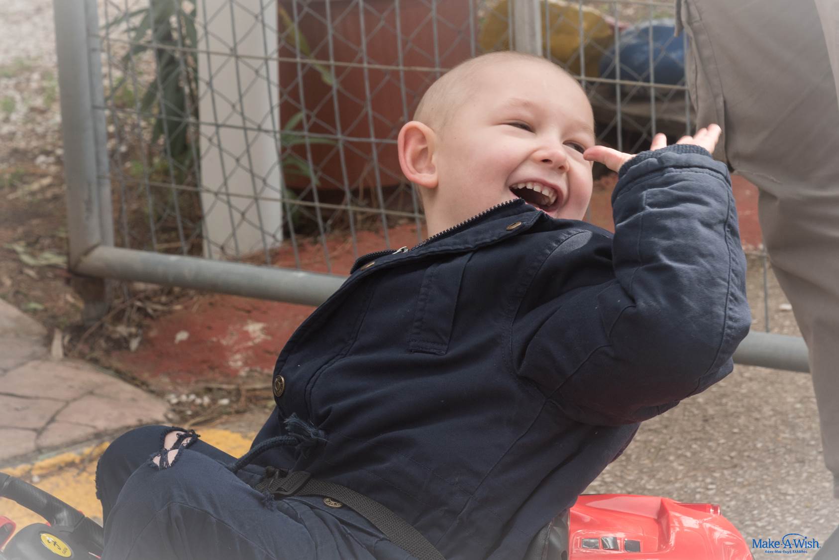 Με τη συνοδεία της μαμάς του, ο Νικόλας επιβιβάστηκε στο αυτοκίνητο των ονείρων του για να πάει στο χώρο της εκπλήρωσης της ευχής του.