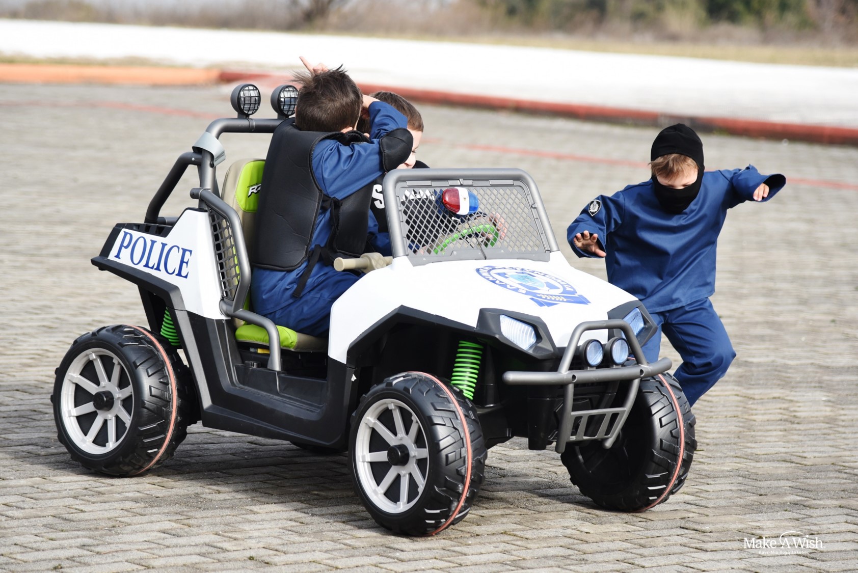 Ο Γιάννης ευχήθηκε να αποκτήσει ένα ηλεκτροκίνητο αστυνομικό αυτοκίνητο, στο οποίο θα χωρούν και οι δύο μέσα. Πως θα μπορούσε άλλωστε να ζήσει μια τόσο μεγάλη ημέρα χωρίς εκείνον; Μα ο μικρός μας ήρωας είχε σκεφτεί και τον εμπλουτισμό της ευχής του: εκείνος, ο αδερφός του και η παρέα τους θα μεταμορφωνόντουσαν σε αστυνομικούς SWAT και θα έκαναν καταδίωξη κακών!