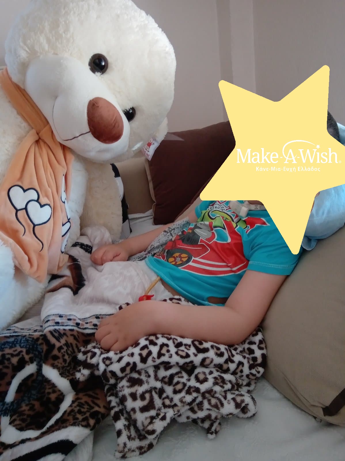 Ο Α. δέχεται πολλή αγάπη, κάτι που φαίνεται στο υπέροχο χαμόγελό που ζωγραφίζεται σε όλο του το πρόσωπο. Μα περισσότερο από όλα τον προδίδουν τα λαμπερά του μάτια. Ανόθευτη χαρά από την αγνή του ψυχή σκέπασε όλο του το πρόσωπο όταν ξάπλωσε για πρώτη φορά στη δική του νοσοκομειακή κλίνη. Μία κλίνη που αποτελούσε σημαντική ανάσα για την οικογένεια από πολλές απόψεις και εξασφάλιζε τη διατήρηση μιας αξιοπρεπούς καθημερινότητας για τον μικρό μας. Ένα μαγικό πλάσμα που χαμογελά με τα πιο απλά πράγματα στον κόσμο όπως παρακολουθώντας ένα animation στην τηλεόραση ή ακουμπώντας τα χεράκια του στα τεράστια λούτρινα που τον περιβάλλουν. Γιατί στα απλά πράγματα που θεωρούμε δεδομένα κρύβεται η αληθινή μαγεία και ομορφιά. Σε αυτά μπορούμε να αναγνωρίζουμε τον εαυτό μας, καθώς κάθε φορά που βγαίνουμε από τον μικρόκοσμό μας, μας διδάσκουν πόσο σημαντικοί είμαστε ο ένας για τον άλλον. Μόνο μαζί μπορούμε να καταφέρουμε τα αδύνατα. Μόνο στηρίζοντας ο ένας τον άλλον θα κάνουμε πραγματικά θαύματα. Και ο Α. είναι το θαύμα όλων όσων δε καταφέρνουμε να απομακρύνουμε το σκοτάδι από το βλέμμα και να στραφούμε στο φως. Είναι η ελπίδα που μας κρατάει ενωμένους.»