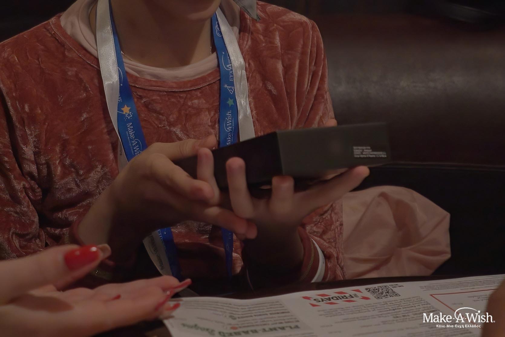 Αφού της σερβίραμε ως επιδόρπιο όλα τα αξεσουάρ του κινητού της, σαν τελευταίο δώρο το κινητό της. Η Σ. έσκισε με μανία το περιτύλιγμα και αναφώνησε: «Το κινητό μου!». Ήταν μια στιγμή που θα κρατήσουμε για πάντα στην καρδιά μας, καθώς η ευτυχία που αντικρίσαμε στα μάτια και το πρόσωπό της ήταν πραγματικά ασύγκριτη.