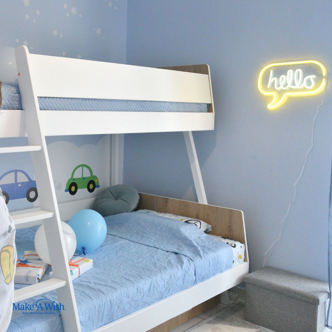 Το αγαπημένο της χρώμα είναι το μπλε, γι’ αυτό και το δωμάτιο διακοσμήθηκε σε αυτές τις αποχρώσεις. Η δική της πλευρά γέμισε αστεράκια, ενώ από την πλευρά του αδελφού της προστέθηκαν αυτοκινητάκια, όπως είχε προτείνει η ίδια. Ένα μεγάλο γραφείο τοποθετήθηκε στο δωμάτιο, ώστε να μπορεί να διαβάζει, αλλά και να ζωγραφίζει, κάτι που αγαπά πολύ. Η μητέρα της βοήθησε καθ’ όλη τη διαδικασία, συζητώντας με τις νεράιδες για κάθε λεπτομέρεια και δείχνοντας την ίδια ζεστασιά που είχε όλη η οικογένεια.