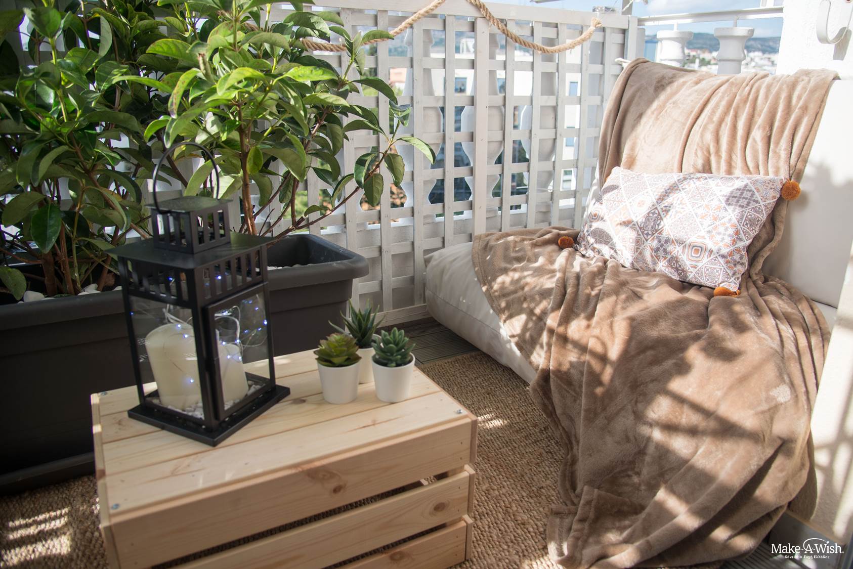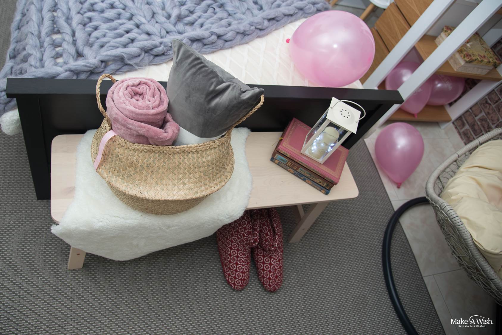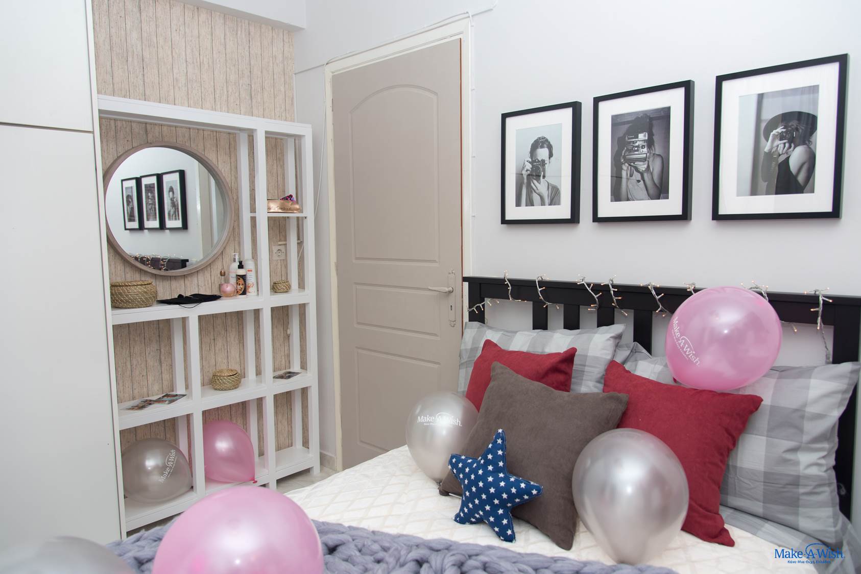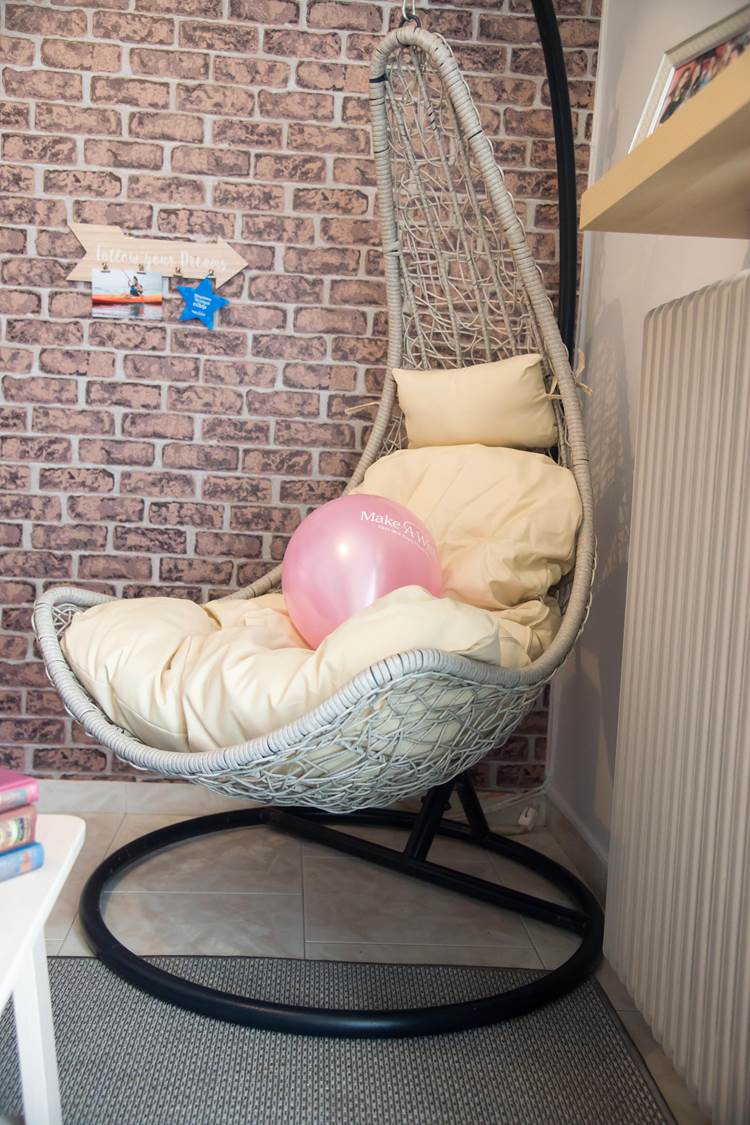 Μετά από ένα υπέροχο διήμερο με αγαπημένα της πρόσωπα, είχε έρθει η στιγμή να αντικρίσει αυτό που με τόση λαχτάρα περίμενε! Έτσι, την υποδεχθήκαμε όλοι με πολύ ενθουσιασμό και χαρά την ημέρα της εκπλήρωσης της ευχής της, γεμάτοι αγωνία για το αν θα της αρέσει το νέο της δωμάτιο… Μας αγκάλιασε και προχώρησε σαν σίφουνας στο διάδρομο. Με τρεμάμενα χέρια πήρε το ψαλίδι, έκοψε την κορδέλα και αποφασιστικά άνοιξε την πόρτα! Τα ζεστά της μάτια έλαμψαν! «Είναι τέλειο!», αναφώνησε! Παρατηρούσε το νέο της μπουντουάρ, το γωνιακό γραφείο που φανταζόταν, τα καδράκια πάνω από το κρεβάτι της που μαρτυρούσαν την άλλη της αγάπη, τη φωτογραφία! Της δώσαμε χρόνο να το περιεργαστεί όλα, με την ησυχία της. «Εγώ θα μείνω εδώ τώρα!» είπε μόλις κάθισε στην κρεμαστή της πολυθρόνα! Όμως οι εκπλήξεις δεν είχαν τελειώσει… το όνειρο δεν σταματούσε εκεί… Τραβήξαμε την κουρτίνα και της αποκαλύψαμε το χουχουλιάρικο μπαλκονάκι της που είχε ολότελα αλλάξει όψη! Ξετρελάθηκε! Ήταν κάτι που δεν το περίμενε, δεν είχε περάσει καν από το μυαλό της! Φώναξε τους φίλους της να το δουν και όλοι μαζί κάθισαν αγκαλιασμένοι, γελώντας για να το απολαύσουν! Το προσωπάκι της είχε φωτιστεί ολόκληρο και η μαμά της μάς είπε συγκινημένη: «Πιστεύω ότι όλοι εσείς στο Κάνε-Μια-Ευχή με τη θετική σας ενέργεια, την αγάπη και το χαμόγελό σας είστε ό,τι πιο υπέροχο υπάρχει! Το όνειρο της κόρης μας έγινε πραγματικότητα… ξαναβρήκε το χαμόγελό της και τα γλυκά ματάκια της άρχισαν  πάλι να λάμπουν! Είστε οι «δικοί μας» άνθρωποι …Το ευχαριστώ είναι τόσο λίγο μπροστά σε αυτό που νιώθουμε!»