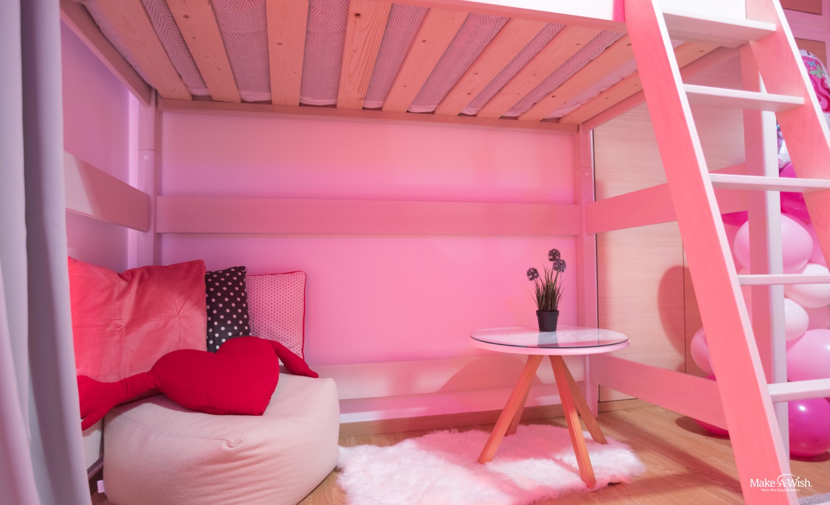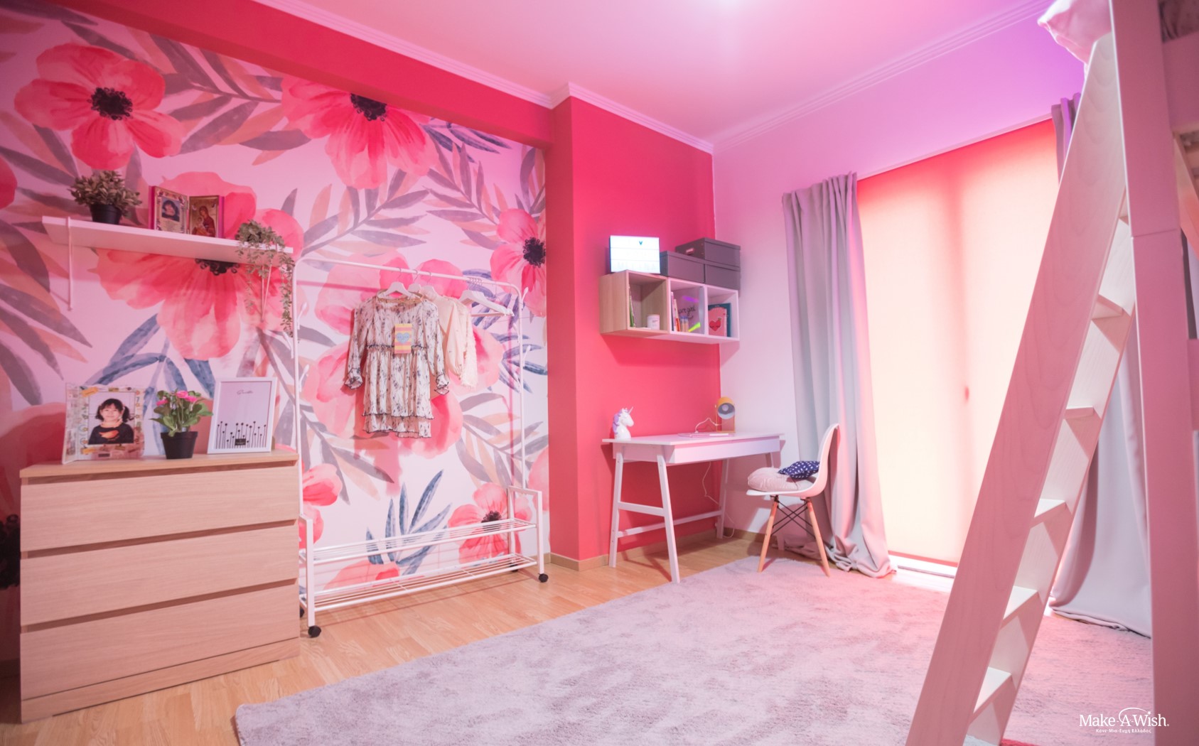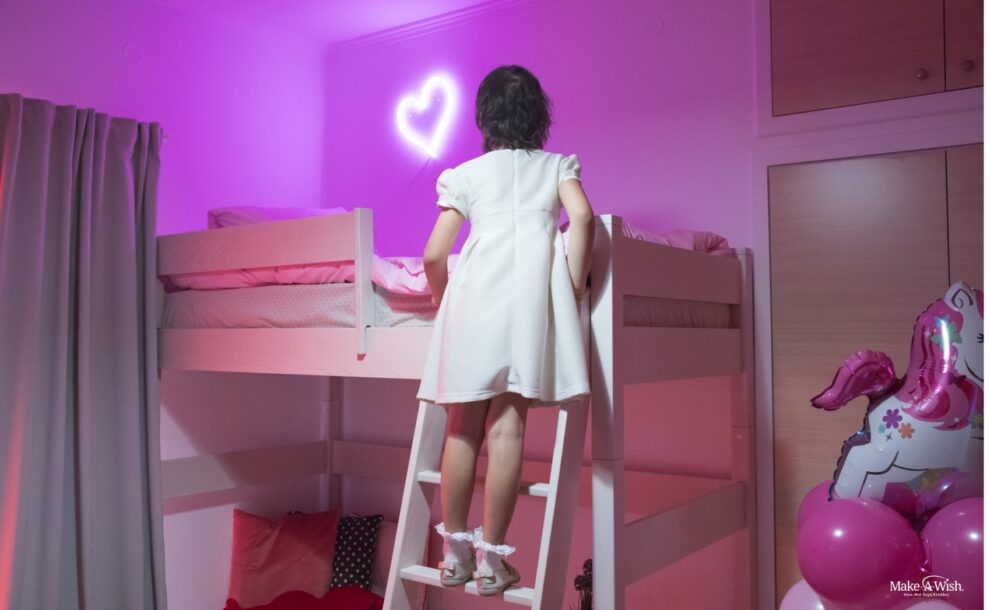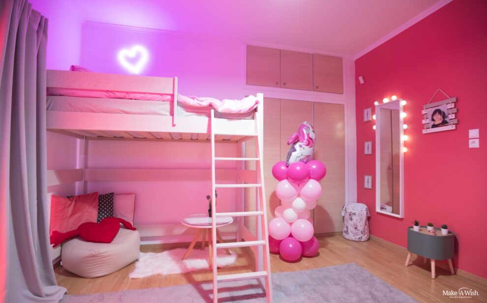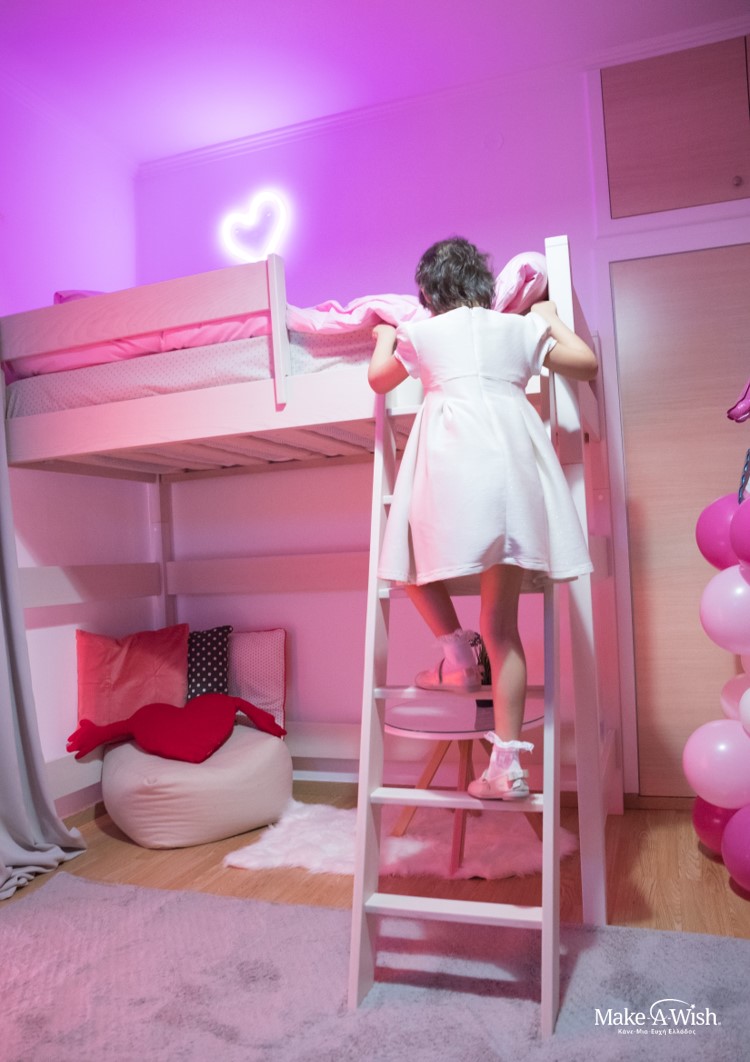 «Νεραϊδούλα μου, θέλω ένα δωμάτιο που να μπορώ να παίζω συνέχεια. Θέλω να περνάω περισσότερο χρόνο στο δωμάτιο μου με τα παιχνίδια μου!». Αυτά ήταν τα πρώτα λόγια της μικρής μας. Είναι ένα παιδί που ζει το δικό του παραμύθι γεμάτο ουράνια τόξα, μονόκερους και για σπίτι της έχει ένα ξεχωριστό ροζ συννεφάκι. Είναι ένα παιδί με τεράστια φαντασία που είναι γεμάτο ενέργεια. Έχει περάσει πολλά από πολύ μικρή ηλικία και τώρα που είναι καλά θέλει να κάνει και να χαρεί όλα όσα της είχαν στερήσει τα νοσοκομεία τόσο καιρό.