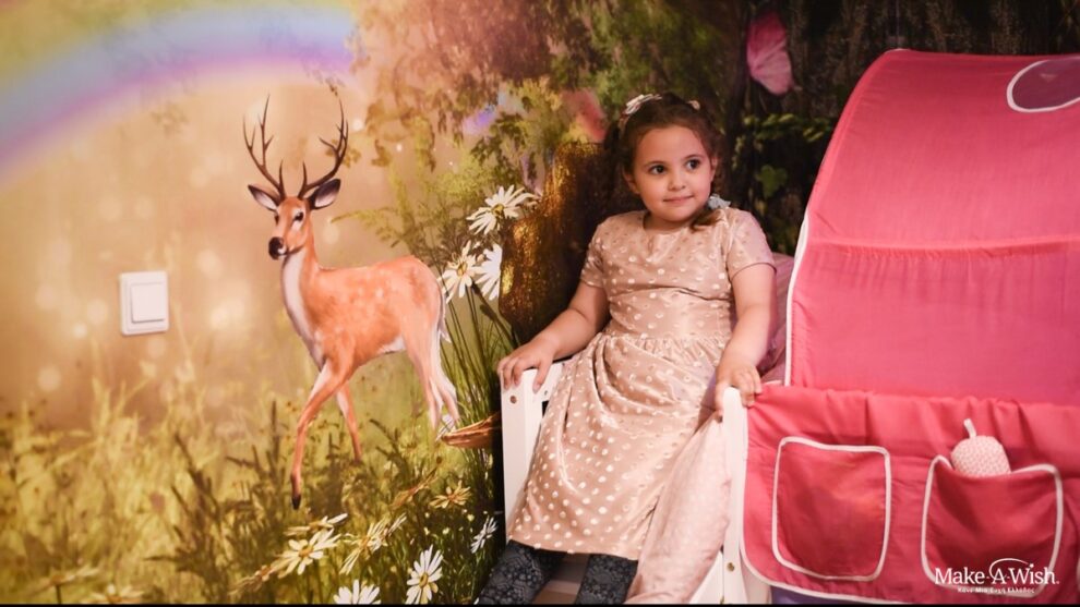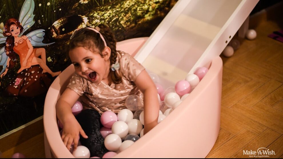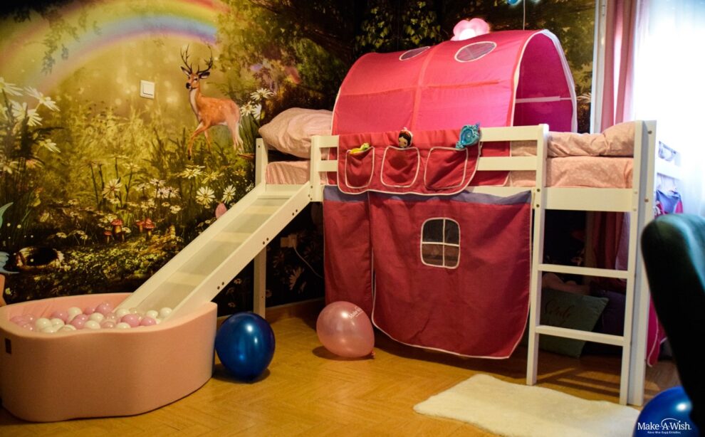 Αν και 4 ετών, είχε άποψη για τα πάντα και ήξερε ακριβώς τι ήθελε να έχει το δωμάτιό της. Ονειρευόταν μέχρι ένα κρεβάτι με τσουλήθρα που να καταλήγει σε μια παιχνιδιάρικη μπαλοπισίνα! Η Μαρία περίμενε με ανυπομονησία τις νεράιδες και ζήτησε με το μαγικό τους ραβδί να δημιουργήσουν ένα δωμάτιο που θα της χαρίσει ατελείωτο παιχνίδι.