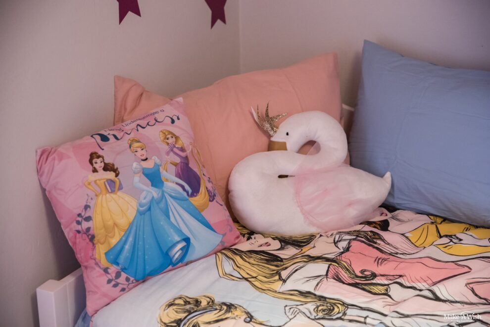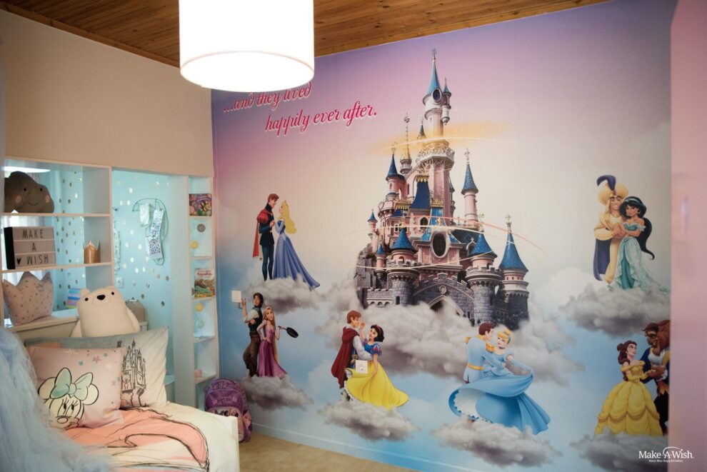 Η Μαριάνθη είναι από τα πιο συνεσταλμένα παιδιά μας, αλλά με ένα βλέμμα τόσο ζεστό και διαπεραστικό, που είναι μια σκέτη γλύκα! Με τη συστολή που τη χαρακτηρίζει και με φωνή χαμηλή, εμπιστεύτηκε στις νεράιδες το πιο μεγάλο της όνειρο που από καιρό ευχόταν να γίνει πραγματικότητα… να μπορούσε – λέει – το δωμάτιό της να γίνει πριγκιπικό και στον μεγάλο τοίχο να βλέπει όλα τα αγαπημένα ζευγάρια πριγκιπισσών και πριγκήπων της Disney! Βέβαια, θα της άρεσε να υπάρχει κάπου και η Minnie Mouse και ήταν σίγουρη πως οι νεράιδες θα τα κατάφερναν όλα.
