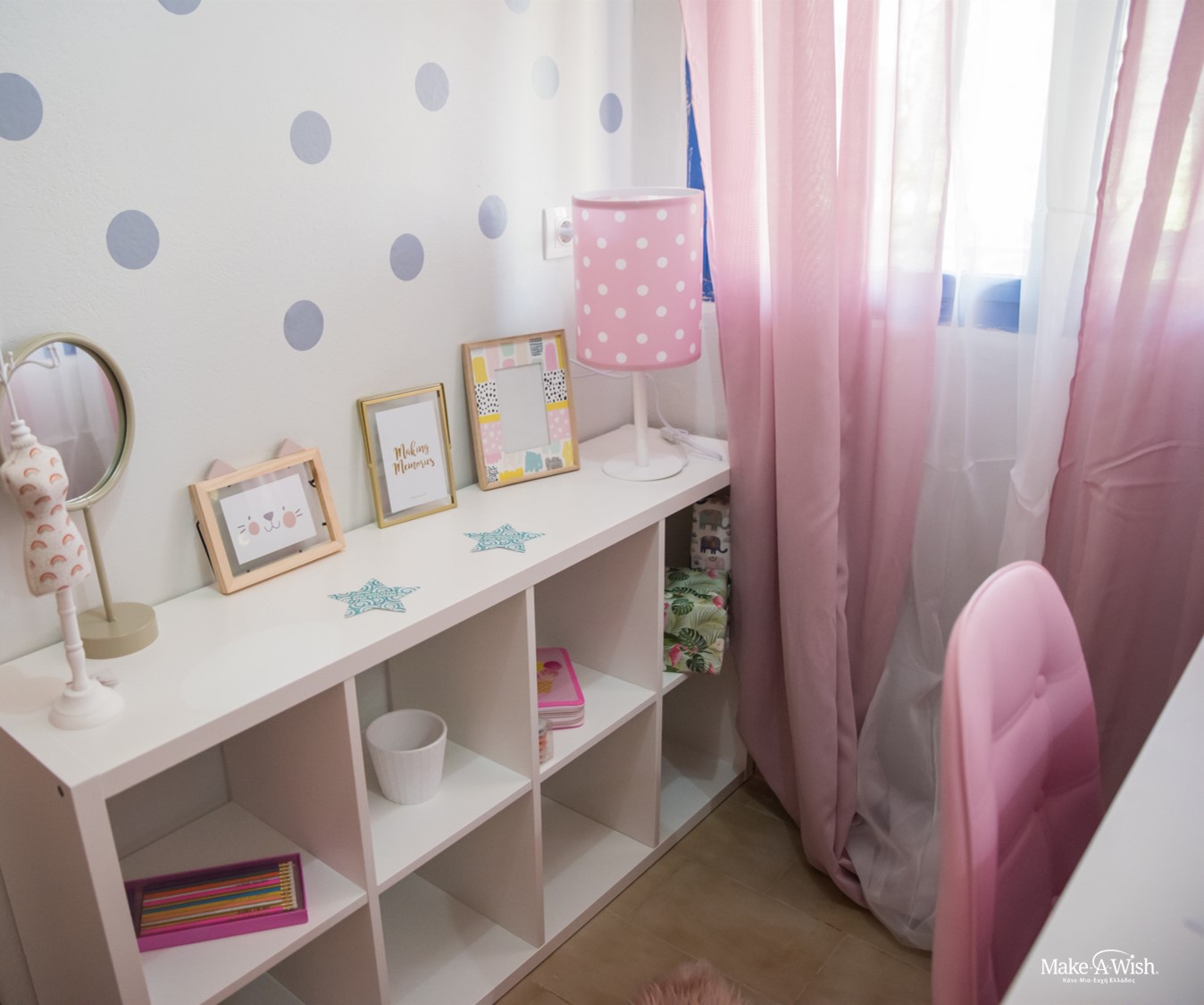 Στο μεγάλο δωμάτιο όλα βρήκαν τη θέση τους και έμενε μόνο να υποδεχθούμε το γλυκό μας κορίτσι! Όταν άνοιξε την πόρτα έμεινε για αρκετή ώρα ακίνητη με τα μάτια διάπλατα, μη μπορώντας να πιστέψει αυτό που έβλεπε μπροστά της! Τίποτα δε θύμιζε το παλιό της δωμάτιο. Όλα ήταν τώρα πιο φωτεινά, πιο χαρούμενα, πιο παραμυθένια. Είχε, επιτέλους, και δικό της γραφείο για να διαβάζει, με καθρέφτη — όπως κάθε σωστή πριγκίπισσα άλλωστε!