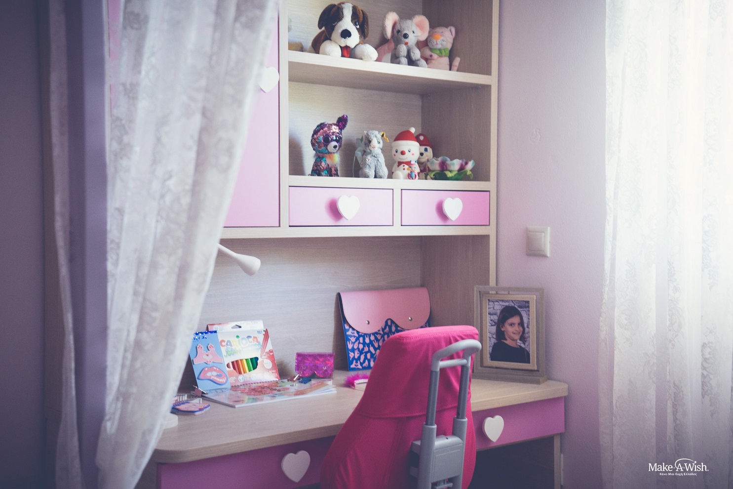 Η 8χρονη Παναγιώτα, ζήτησε ένα πριγκιπικό δωμάτιο και ολόκληρη η ομάδα μας συντονίστηκε ώστε να γίνει η επιθυμία της πραγματικότητα! Μέχρι να εκπληρωθεί η ευχή της μικρής μας, οι νεράιδες φρόντισαν να συναντηθούν μαζί της διαδικτυακά για να γνωριστούν καλύτερα και να συζητήσουν λεπτομέρειες που θα μπορούσαν να βοηθήσουν στον σχεδιασμό! Έμαθαν δε, ότι η Παναγιώτα μας είναι  πολυτάλαντη. Της αρέσει να ζωγραφίζει και να παίζει αρμόνιο, στο οποίο φυσικά και είναι καταπληκτική.