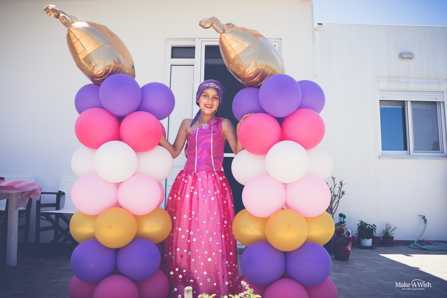 Είχε μπει στο ρόλο της πριγκίπισσας και γεμάτη ευτυχία σήκωνε το πριγκιπικό της φουρό και περπατούσε γεμάτη νάζι και καμάρι. Στήλες μπαλονιών, χρώματα, μαγεία και τεράστια χαμόγελα, όλα στο δωμάτιο της και όλα για εκείνη. Με δυσκολία αποχαιρετίσαμε την Παναγιώτα, η οποία δε μπορούσε να «προσγειωθεί» στη γη καθώς η ευτυχία την είχε ταξιδέψει στο δικό της «ουρανό» μέσα σε σύννεφα αστερόσκονης, που υπήρχαν μόνο για εκείνη.