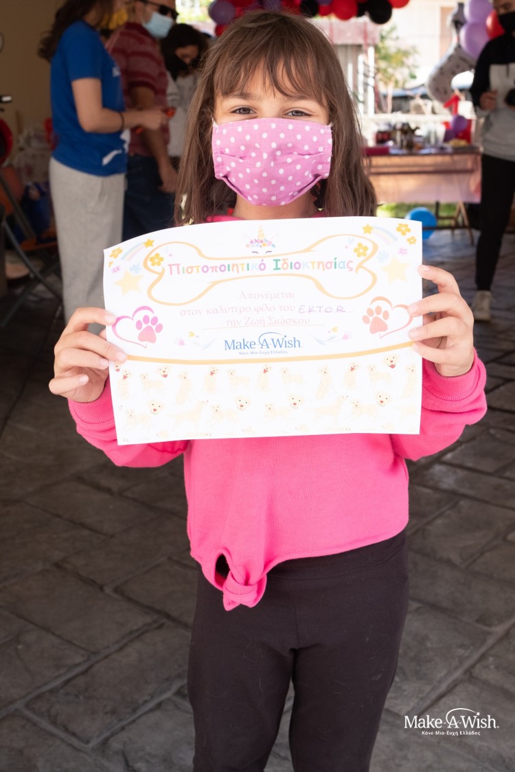 «Είμαι η αδελφή της Ζωής και θα ήθελα να ευχαριστήσω το Κάνε-Μια-Ευχή για όλα αυτά που έκανε! Επίσης θα ήθελα να πως ένα μεγάλο ευχαριστώ στην κα Κατερίνα και στην κα Άλκηστη. Η ευχή της Ζωής ήταν και δική μου ευχή, γιατί πάντα ήθελα έναν σκύλο. Όμως δεν είχα φανταστεί ποτέ ότι θα είχα έναν. Ο Έκτωρ ο σκύλος μας, να είστε σίγουροι ότι είναι πολύ ευτυχισμένος! Όταν μεγαλώσω θέλω να μπω και εγώ στο Κάνε-Μια-Ευχή και να βλέπω χαρούμενα παιδιά!»