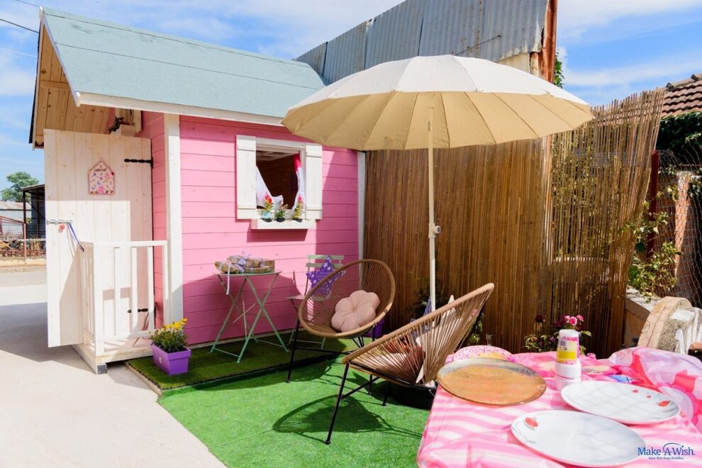 Δύσκολο το εγχείρημα, καθώς ο χώρος της αυλής είναι αρκετά περιορισμένος και χρειαζόταν επιπλέον διαμόρφωση. Οι νεράιδες όμως, όσα εμπόδια κι αν συναντήσουν, τα προσπερνούν! Η Γεωργία μας είχε ονειρευτεί το σπιτάκι της σε ροζ χρώμα και ήθελε να έχει και ένα πατάρι, όπου θα μπορεί να κοιμάται όποτε θέλει.