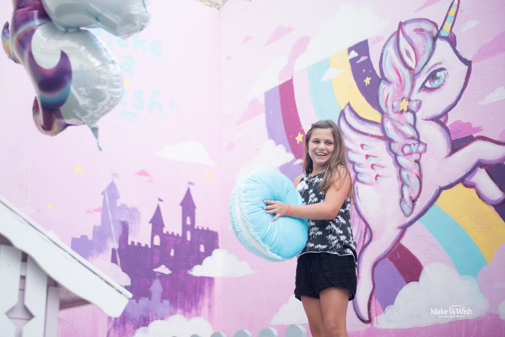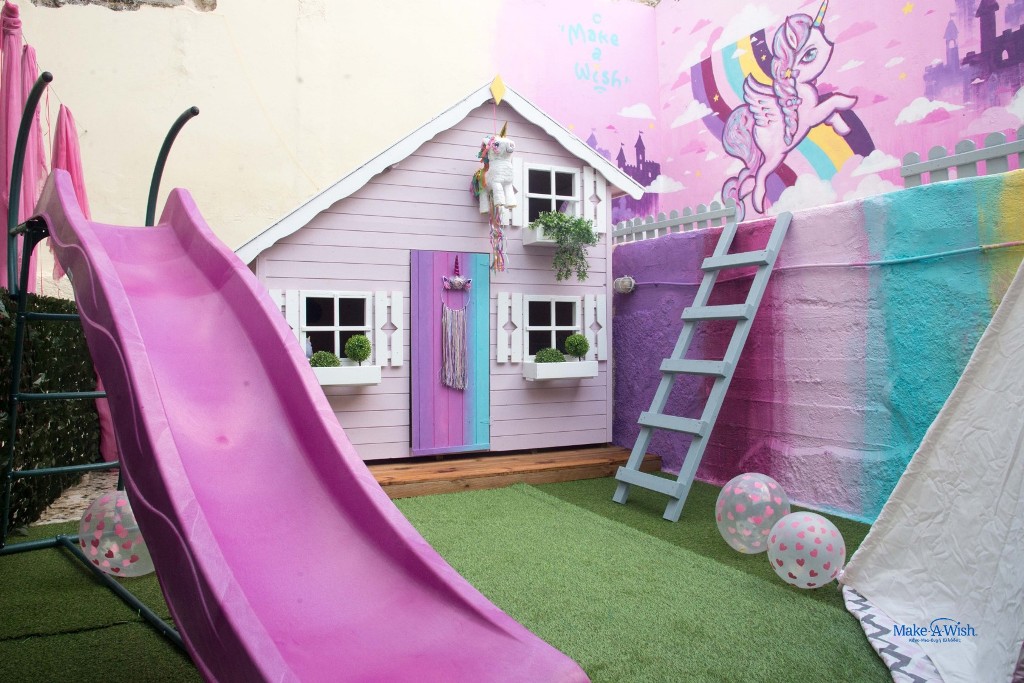 Η Τζωρτζίνα βγαίνοντας από το σπιτάκι συνέχισε εντυπωσιασμένη να παρατηρεί γύρω της. Εξίσου εντυπωσιακό με την ξύλινη κατασκευή ήταν και η τεράστια ζωγραφιά στον τσιμεντένιο τοίχο στο πλάι του κήπου. Εκεί που κάποτε επικρατούσε το μουντό πλέον καλπάζει ένας φτερωτός ροζ μονόκερος δίπλα σε ένα ονειρεμένο παλάτι με συννεφάκια, τόσο ονειρεμένο όσο είναι και το δικό της σπιτάκι κήπου… Μαγεμένη δε μπορούσε να πιστέψει πως όλα όσα έβλεπε και άγγιζε ήταν δικά της.