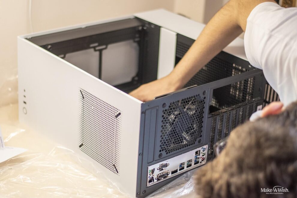 Φυσικά εφοδιαστήκαμε όλα τα βασικά, τα περιφερειακά και απαραίτητα αξεσουάρ ενός συστήματος gaming για να είναι ακριβώς όπως το φανταζόταν και το περίμενε ο Πάρης. Ποτέ μας δεν έχουμε σηκώσει ελαφρύτερο επεξεργαστή και το διαπιστώσαμε, καθώς μεταφέραμε τα πράγματα. Μα φυσικά – μέσα στη συσκευασία βρισκόταν ένα άδειο κουτί. Τίποτα από ό,τι καθιστά μια μονάδα υπολογιστή λειτουργική δεν είχε τοποθετηθεί στο εσωτερικό της. Τροφοδοτικό, μνήμη Ram, κάρτα γραφικών, CD-ROM, σύστημα ψύξης και τόσα άλλα άγνωστα, για κάποιον που δεν είναι προγραμματιστής, εξαρτήματα που κρύβει ένας υπολογιστής δεν βρίσκονταν μέσα σε αυτόν. Πολύ απλά γιατί όλα αυτά συνέθεταν το όνειρο του Πάρη: να αποκτήσει το δικό του υπολογιστή συναρμολογώντας τον κομμάτι κομμάτι. Μέχρι και με εργαλεία συναρμολόγησης θα τον εφοδιάζαμε, ώστε να ζήσει την εμπειρία που είχε ονειρευτεί, όσο πιο έντονα γινόταν.