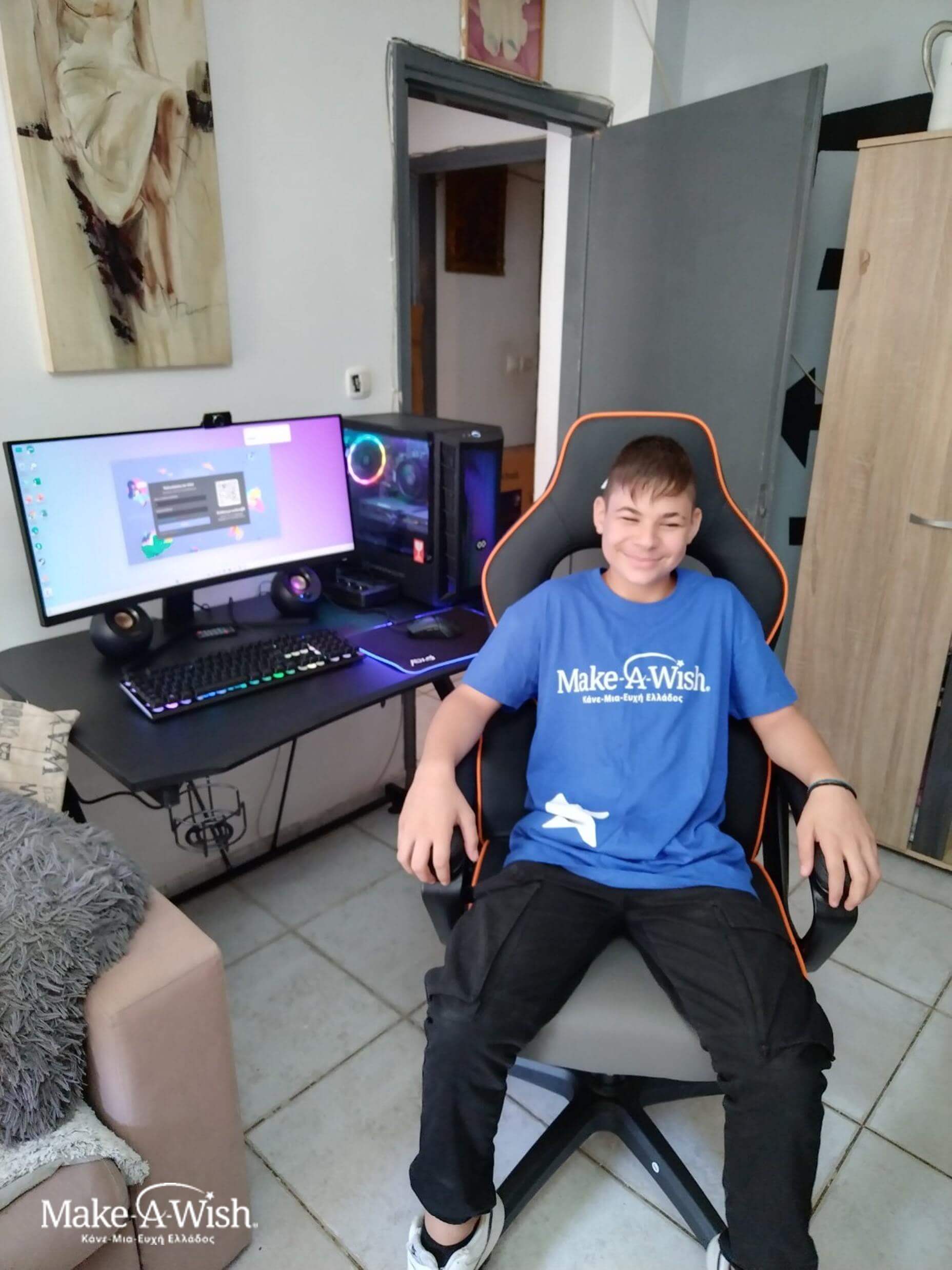 Ένας υπολογιστής gaming ήταν η ευχή του Στράτου, για να παίζει παιχνίδια ταχύτητας! Η ζωή του είναι η ταχύτητα, όπως μας είπε χαρακτηριστικά, και λατρεύει να παρακολουθεί αγώνες rally, motogp και όλα τα σχετικά. Για την ευχή του περίμενε ότι ίσως τους πηγαίναμε σε κάποιο εστιατόριο όπου και θα του δίναμε τον υπολογιστή. Ούτε στα πιο τρελά του όνειρα δεν είχε φανταστεί αυτό που θα ακολουθούσε!