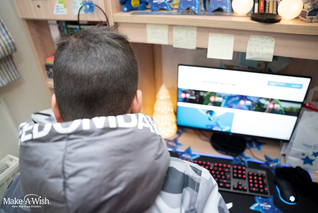 Όταν τελείωσε ο αγώνας, όλοι μαζί επέστρεψαν στο σπίτι του Β. Μπαίνοντας μέσα, είδε μαζεμένη όλη την οικογένειά του, αλλά και δύο εθελοντές μας. Κάτι άρχισε να υποψιάζεται! Άνοιξε την πόρτα του δωματίου του και αντίκρισε τον ολοκαίνουργιο υπολογιστή gaming, που είχε ευχηθεί να αποκτήσει, έτοιμο και στημένο μπροστά του και γύρω ένα σωρό πακέτα με δώρα! Ο Β. έμεινε με το στόμα ανοιχτό και άρχισε να φωνάζει από χαρά! Όλοι μαζί άρχισαν να σκίζουν με περίσσια ανυπομονησία τα περιτυλίγματα για να δουν τι εκπλήξεις έκρυβαν μέσα. Αφού τα αποκάλυψαν όλα, ο Β. πήρε αμέσως θέση μπροστά στον υπολογιστή του και ξεκίνησε να τον ανακαλύπτει. Περιτριγυρισμένος από τους αγαπημένους του ανθρώπους, ήταν πια έτοιμος για νέες διαδικτυακές περιπέτειες.